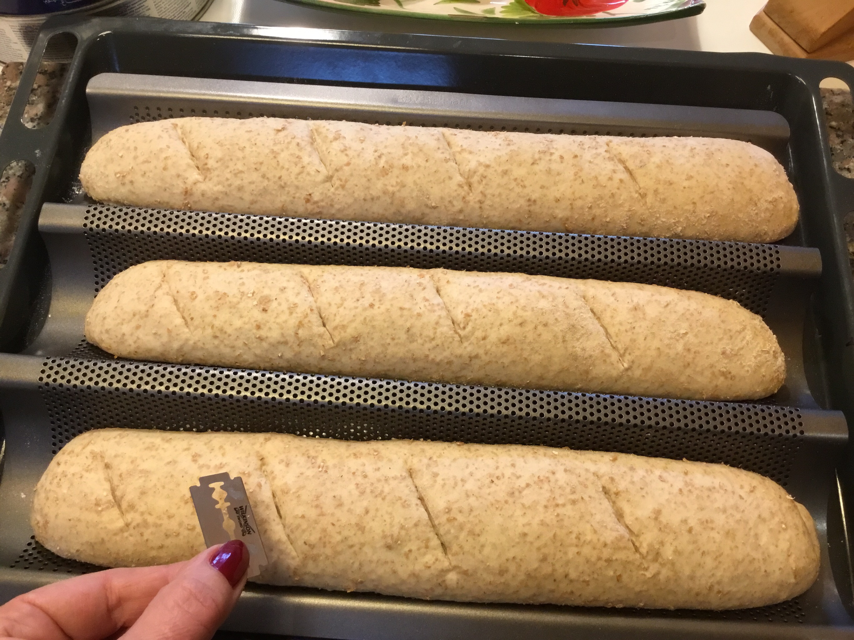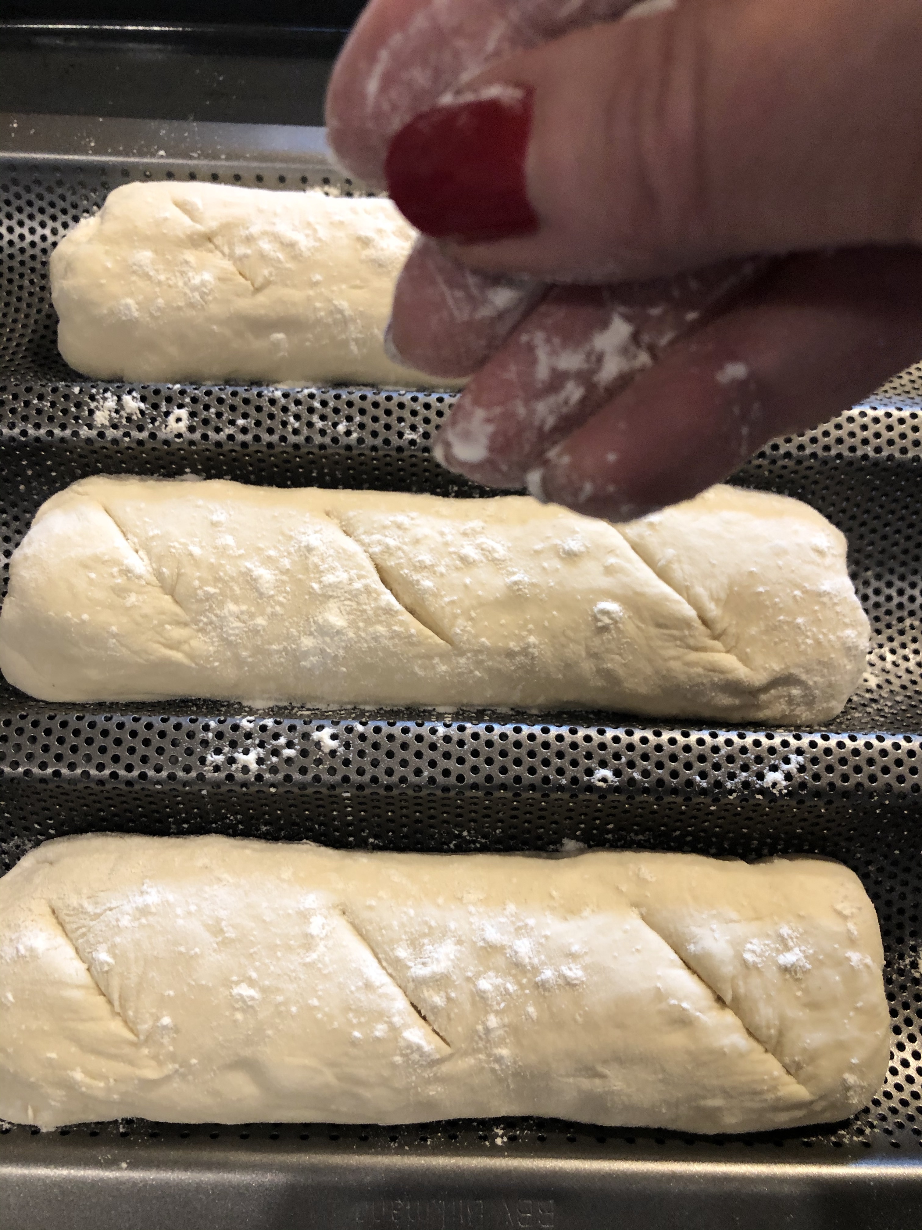 Appoggio i filoncini sulla placca del forno o in quella microforata apposita per il pane