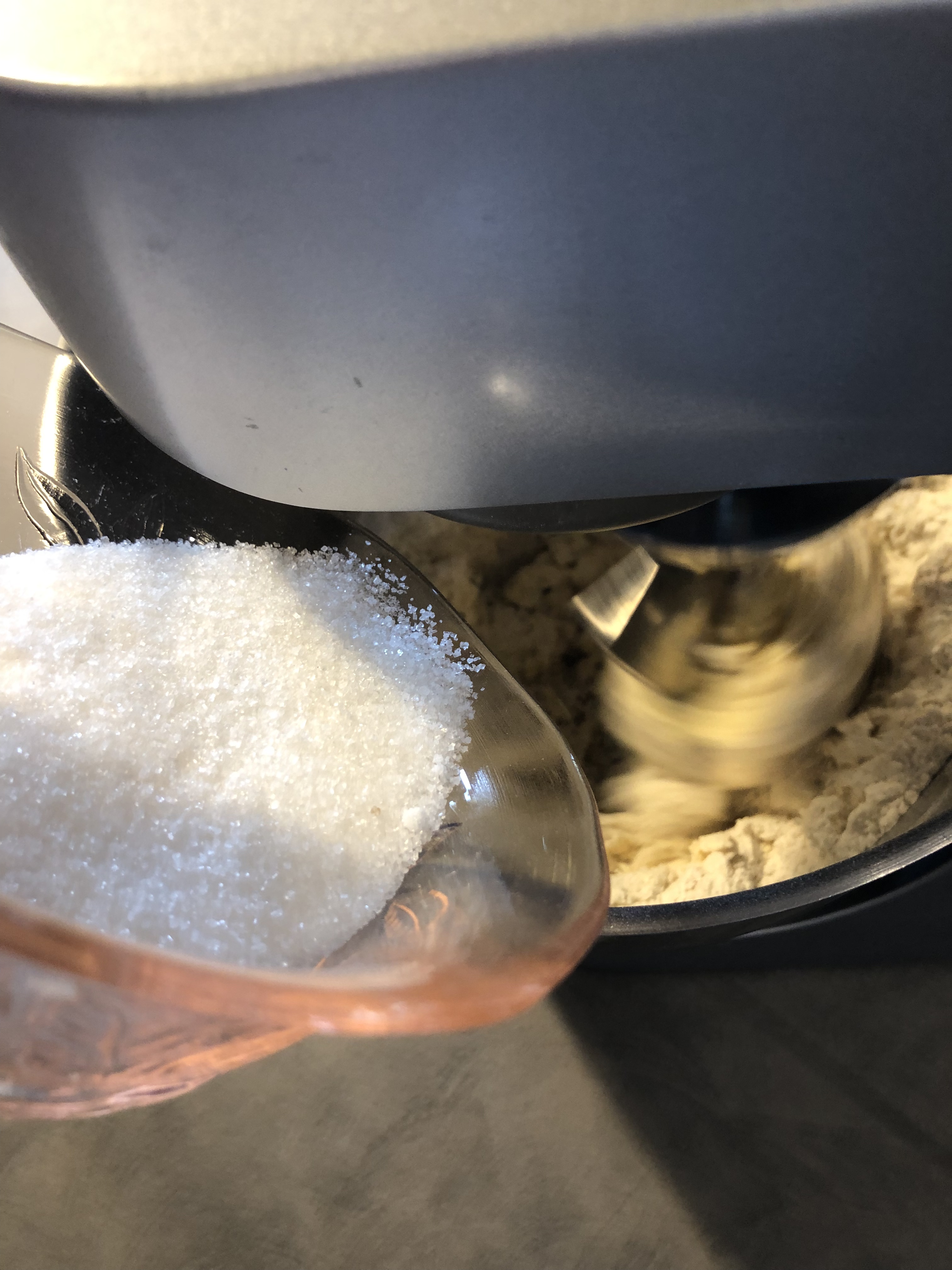 Inizio ad impastare con il gancio, poco dopo aggiungo lo zucchero e lascio lavorare