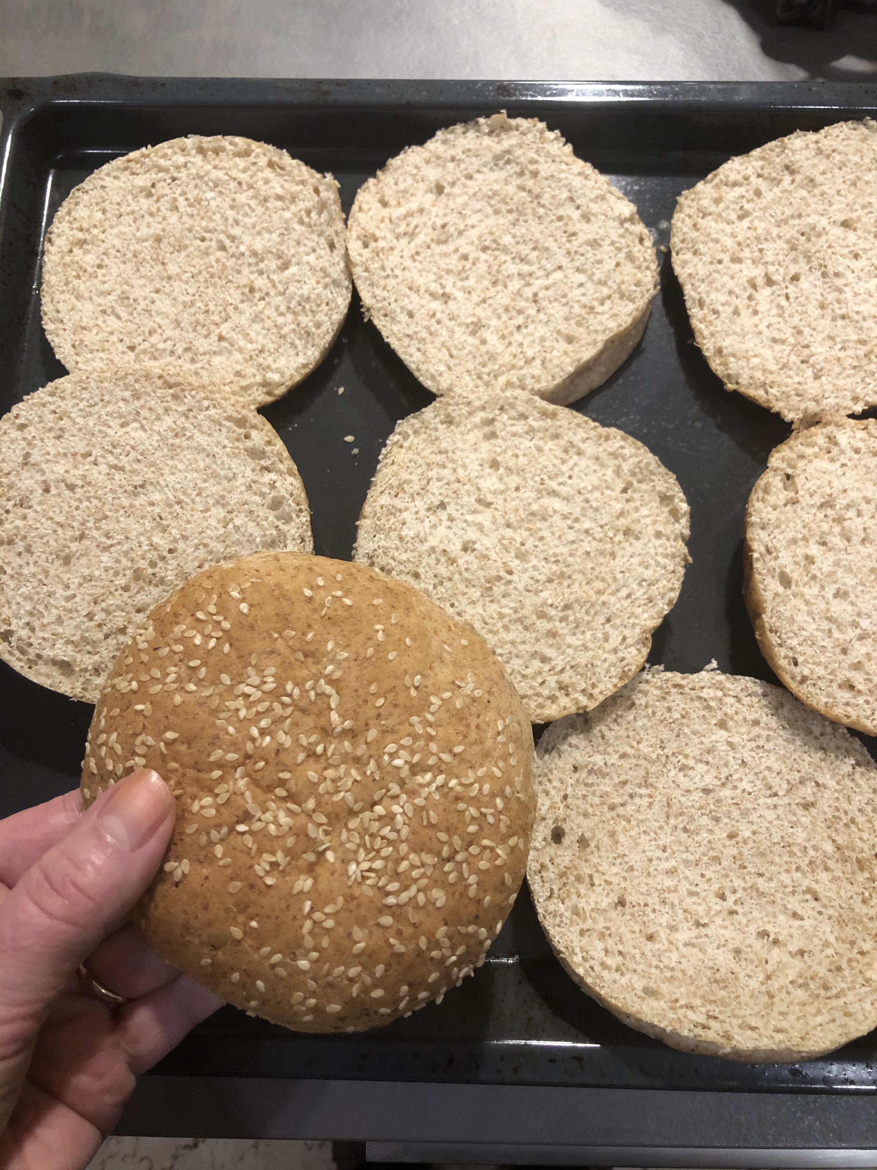 Ricopro una teglia con carta forno e appoggio i dischetti leggermente distanziati, copro con la pellicola appena appoggiata e lascio lievitare circa 1 ora, io sempre in forno spento con la luce accesa