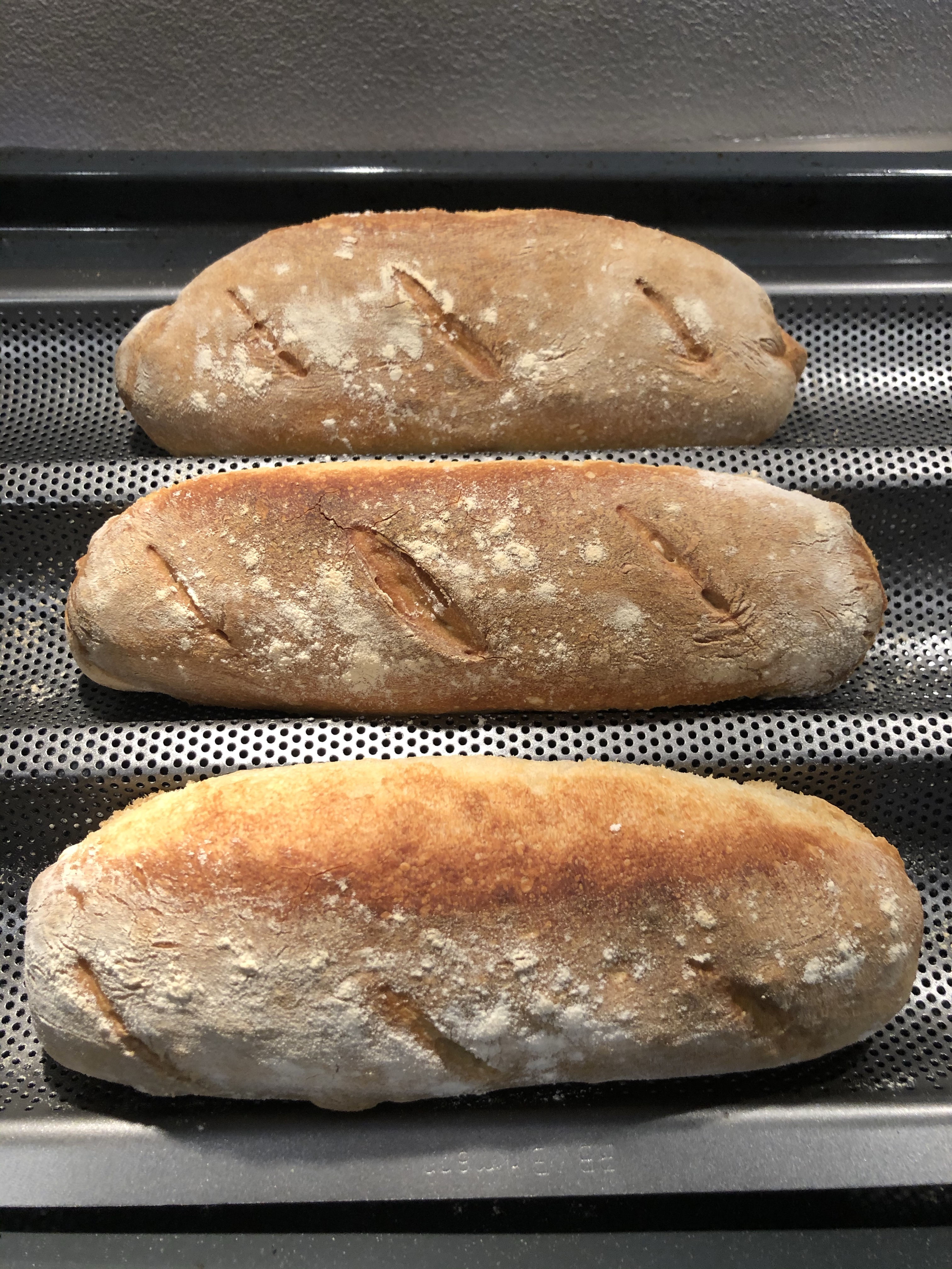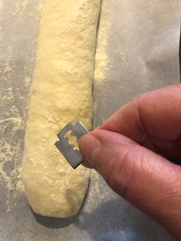 Pratico delle incisioni con un coltello affilato e li infarino leggermente, copro con un canovaccio e lascio lievitare ancora per 30 minuti, intanto scaldo il forno a 230 gradi mettendo sul fondo un pentolino pieno di acqua che creerà il vapore in cottura, trascorso il tempo inforno per circa 20/25 minuti, i filoncini dovranno risultare dorati