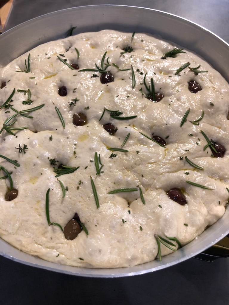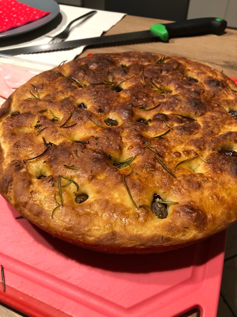 Una focaccia morbida, non troppo dolce, se la volete più dolce aumentate la dose dello zucchero, adatta per la colazione, con lo stesso impasto potete preparare anche dei piccoli panini, potete preparare l”impasto anche la mattina del giorno prima e conservarlo in una bacinella chiusa in un sacchetto di plastica per alimenti e utilizzarla il giorno dopo, é sufficiente togliere l’impasto un paio di ore prima dal frigorifero, poi stenderlo e lasciato lievitare fino al raddoppio, il procedimento poi é uguale come vedete qui sotto