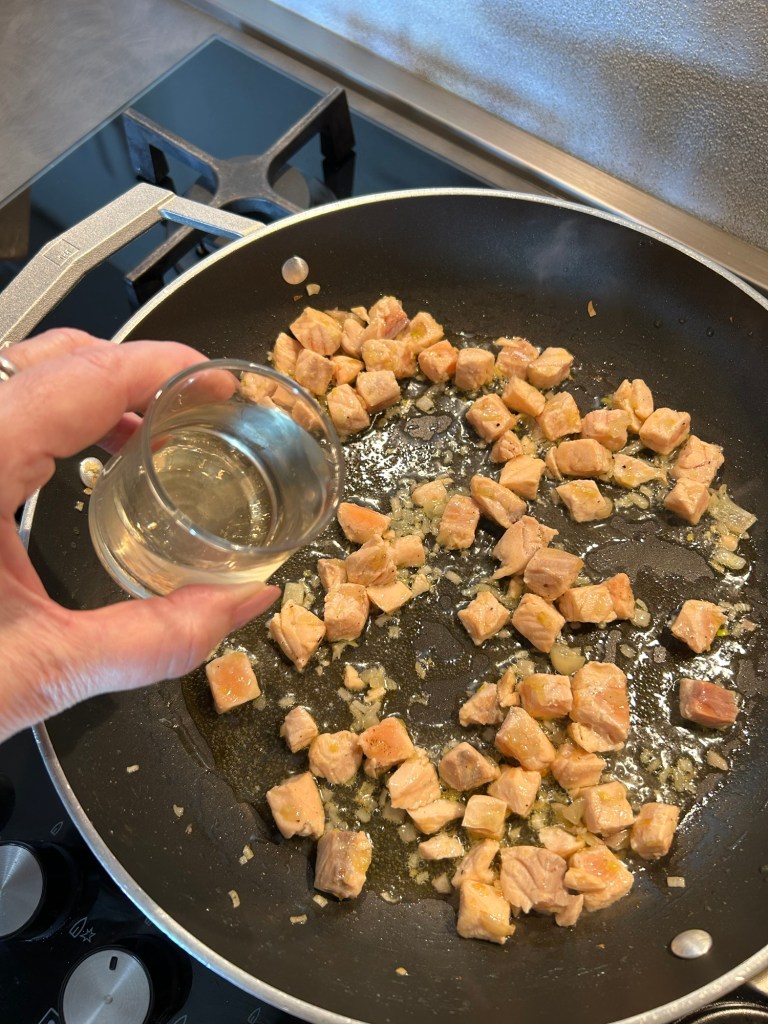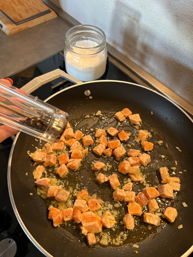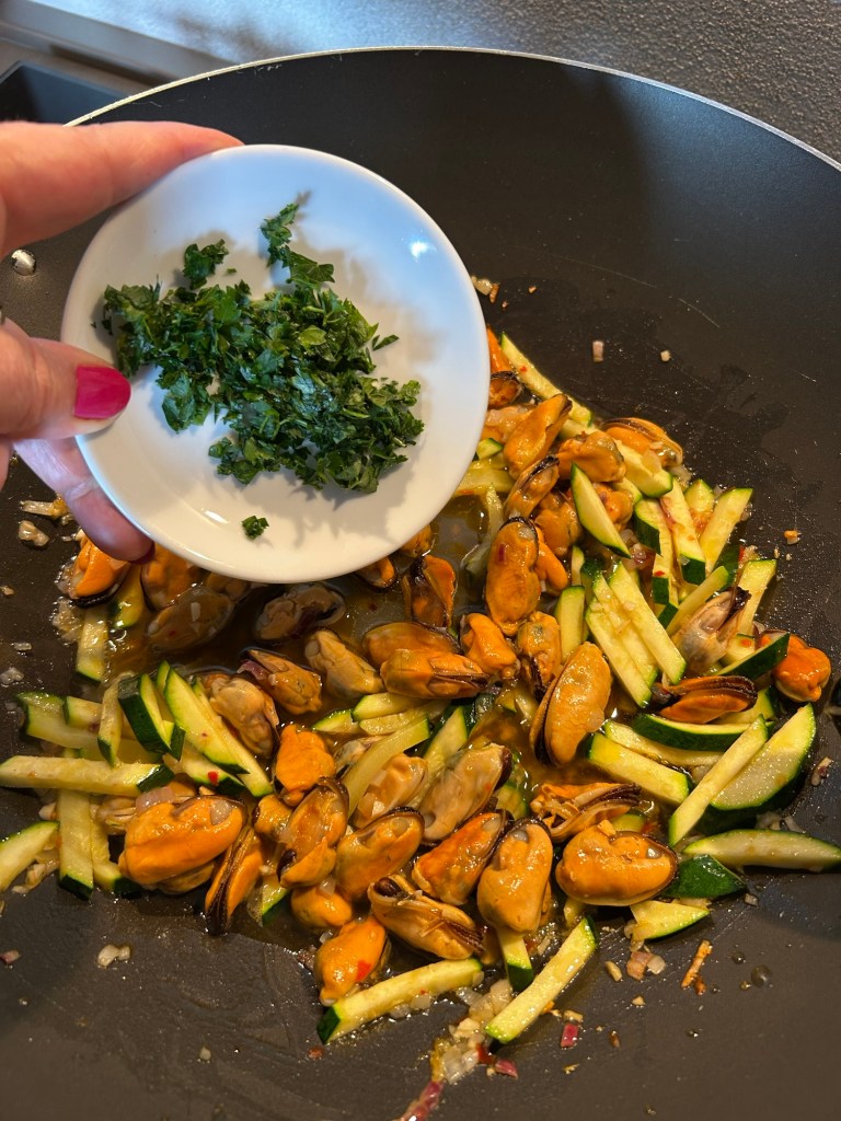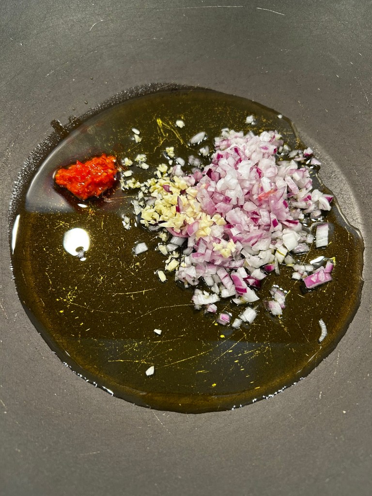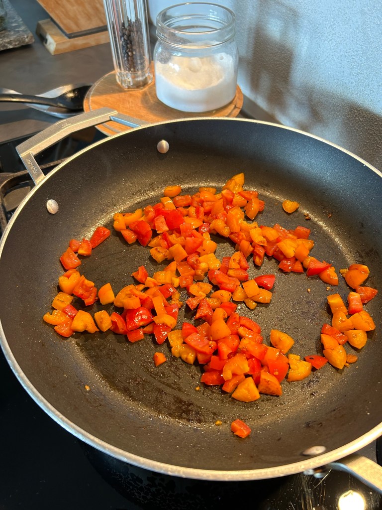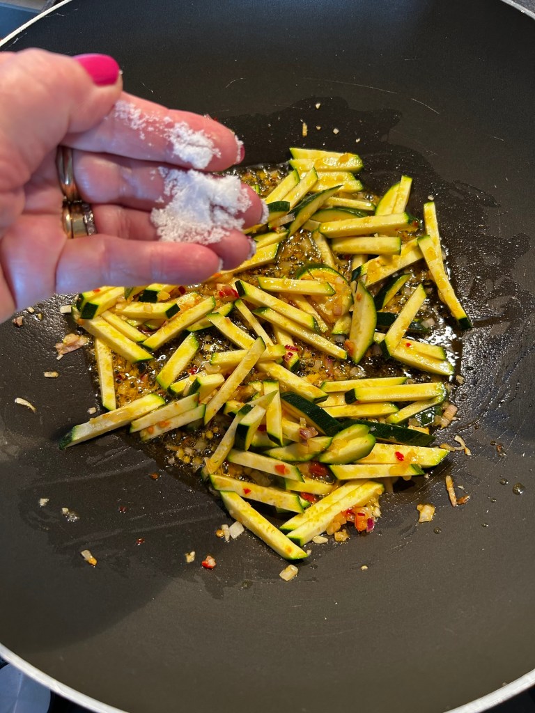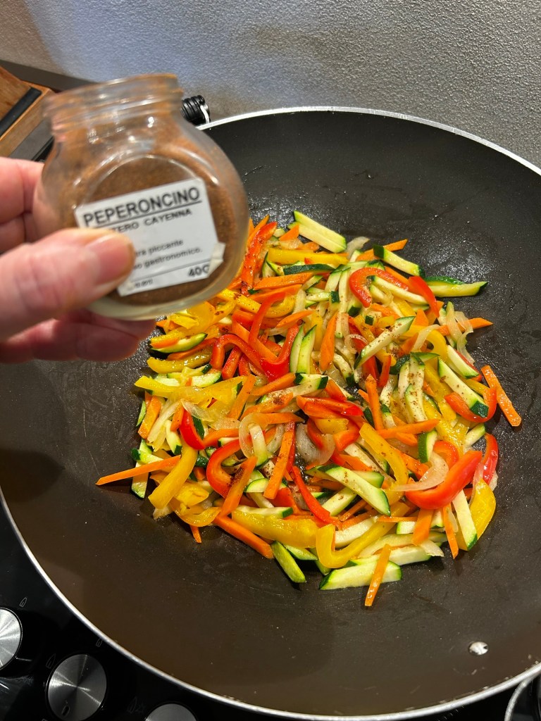 Lascio cuocere a fuoco vivace, aggiungo il peperoncino