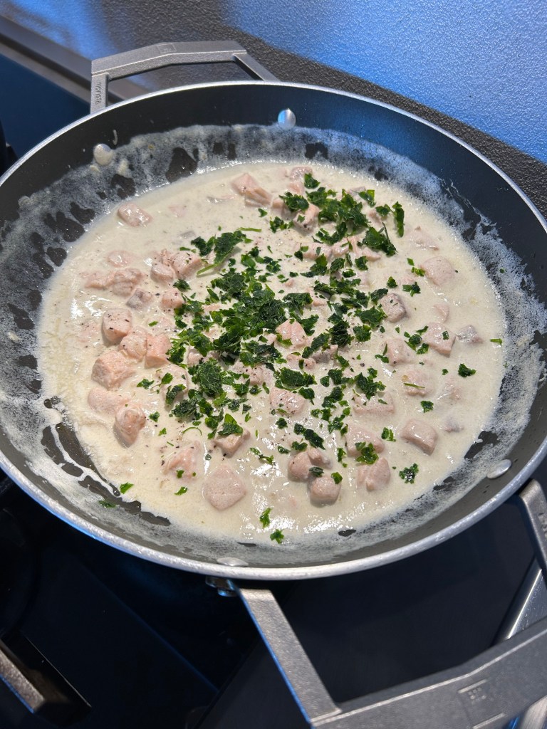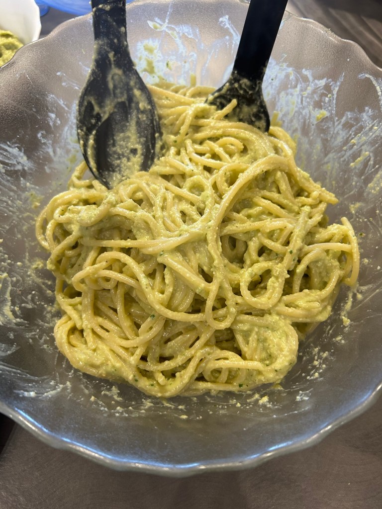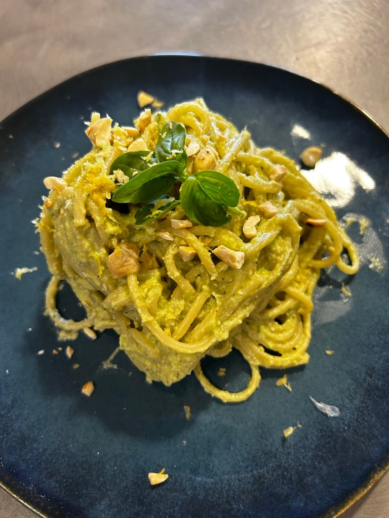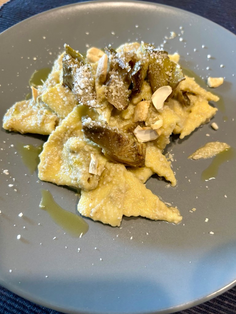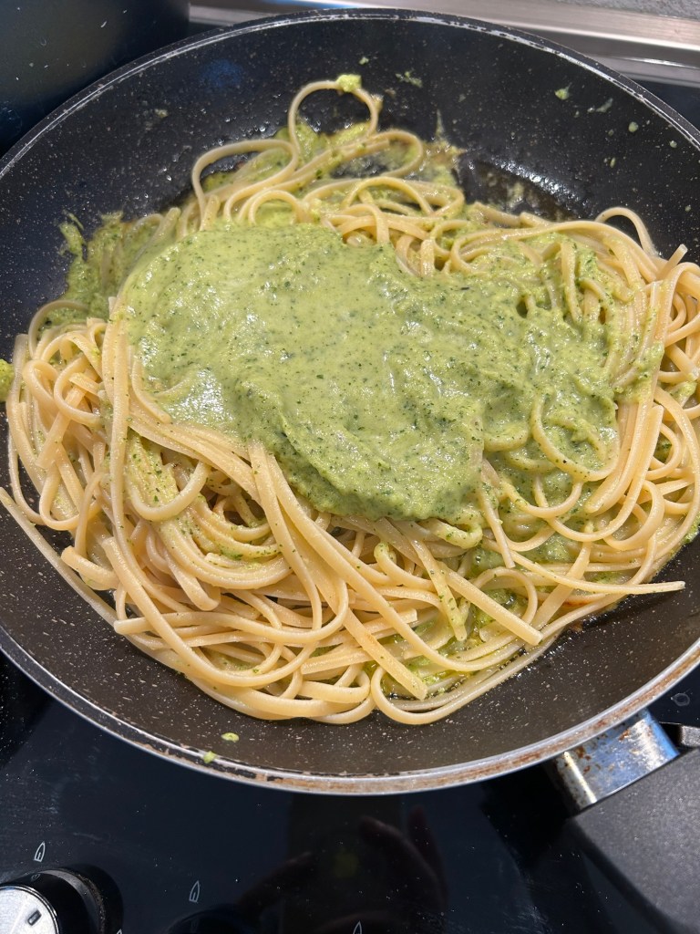 Porto a bollore una pentola con abbondante acqua leggermente salata poi seguo le istruzioni sulla confezione, raggiunto il bollore spengo il fuoco, aggiungo le matassine di noodles a fiamma spenta e lascio per 4 minuti, seguite le istruzioni altrimenti i noodles si rompono, dopo un paio di minuti li muovo delicatamente per disfare le matassine poi li scolo, tengo un pochino di acqua di cottura che potrebbe servire per mantecare