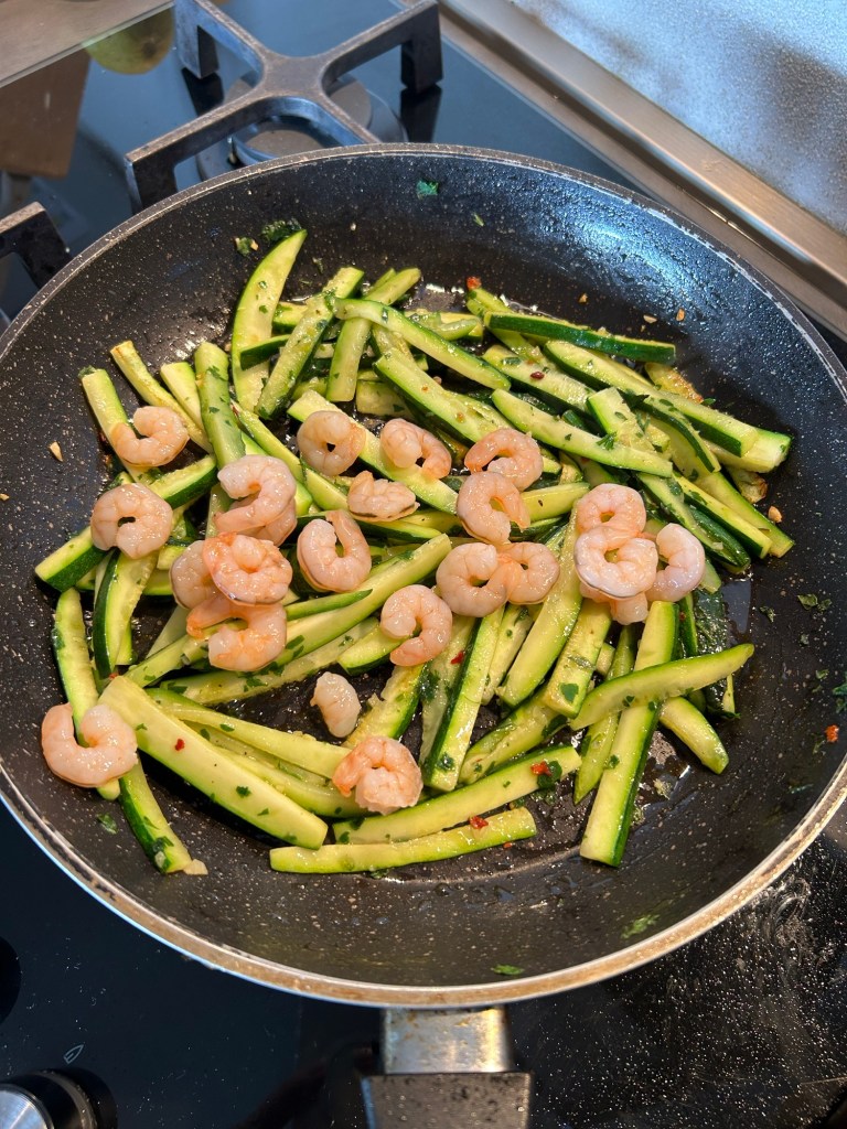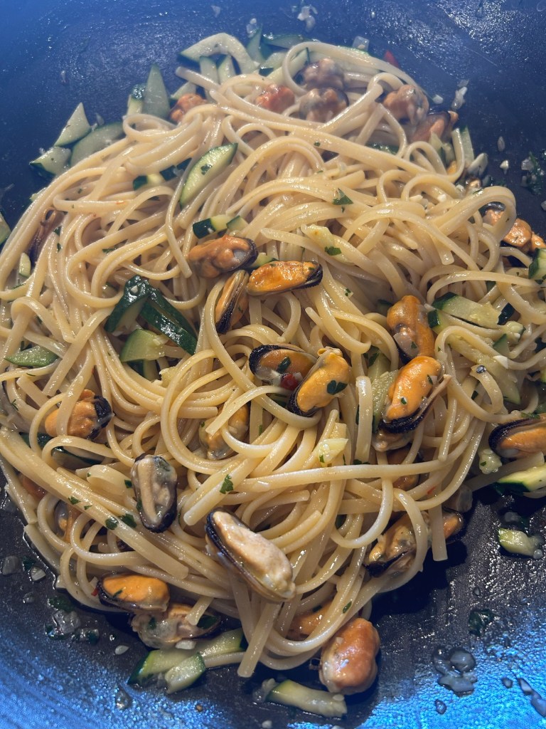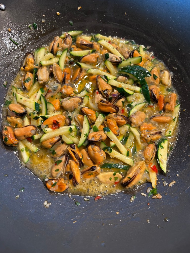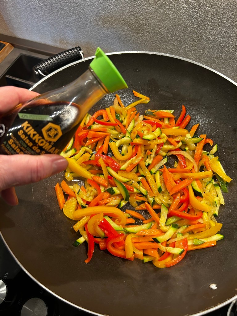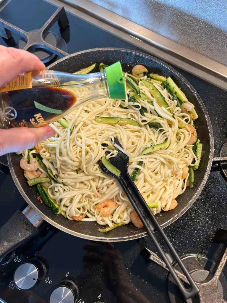 Mescolo e lascio per qualche minuto, aggiungo dei semi di sesamo, assaggio e se serve aggiungo ancora della salsa di soia e qualche cucchiaio di acqua di cottura e un filo di olio