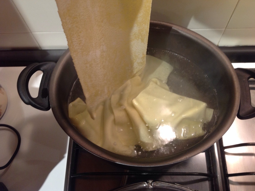 Intanto cuocio i Paccheri in acqua salata e li tolgo molto al dente, li scolo e li dispongo ad asciugare su un canovaccio, fate attenzione non si devono rompere