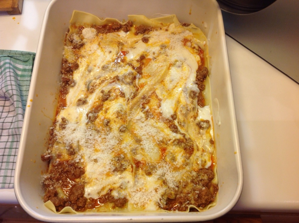 Voglia di lasagne ma non avete voglia di preparare la sfoglia o non avete in casa quella pronta, nessun problema la pasta di sicuro in casa c’è sempre, sciogliete un formato di pasta grossa, tortiglioni, penne, maccheroni, fusilli ecc…..Potete prepararla in anticipo, 100 gr di pasta a testa sono abbondanti ma la preparo come piatto unico, anche perché tutti fanno sempre il bis!😋