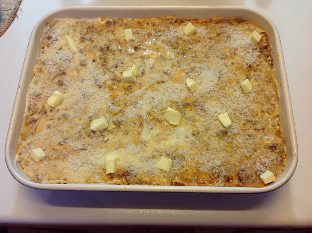Cospargo con abbondante parmigiano grattugiato e distribuisco abbondanti fiocchetti di burro, Inforno a 180 gradi per circa 20 minuti, la pasta deve risultare dorata con una bella crosticina croccante in superficie