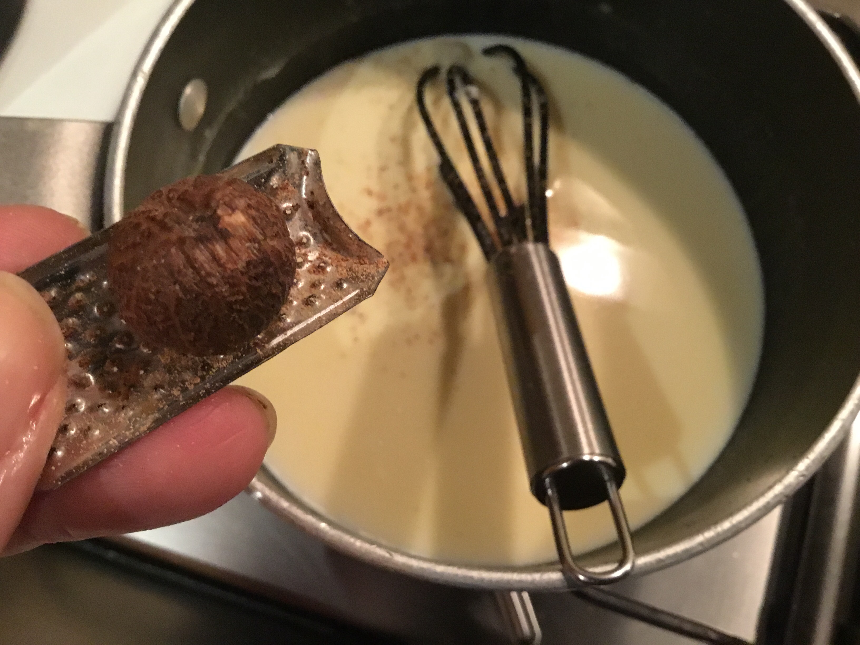 Preparo la besciamella nella maniera classica, sciolgo il burro, aggiungo la farina mescolo e aggiungo il latte mescolando bene per non formare grumi, regolo di sale, pepe, noce moscata e cuocio per una decina di minuti, io ho aggiunto un po’ più di latte perché volevo una besciamella più morbida