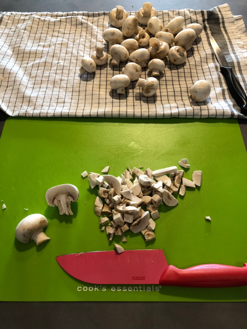Pulisco i funghi togliendo la parte terrosa, li lavo velocemente, li asciugo e li affetto