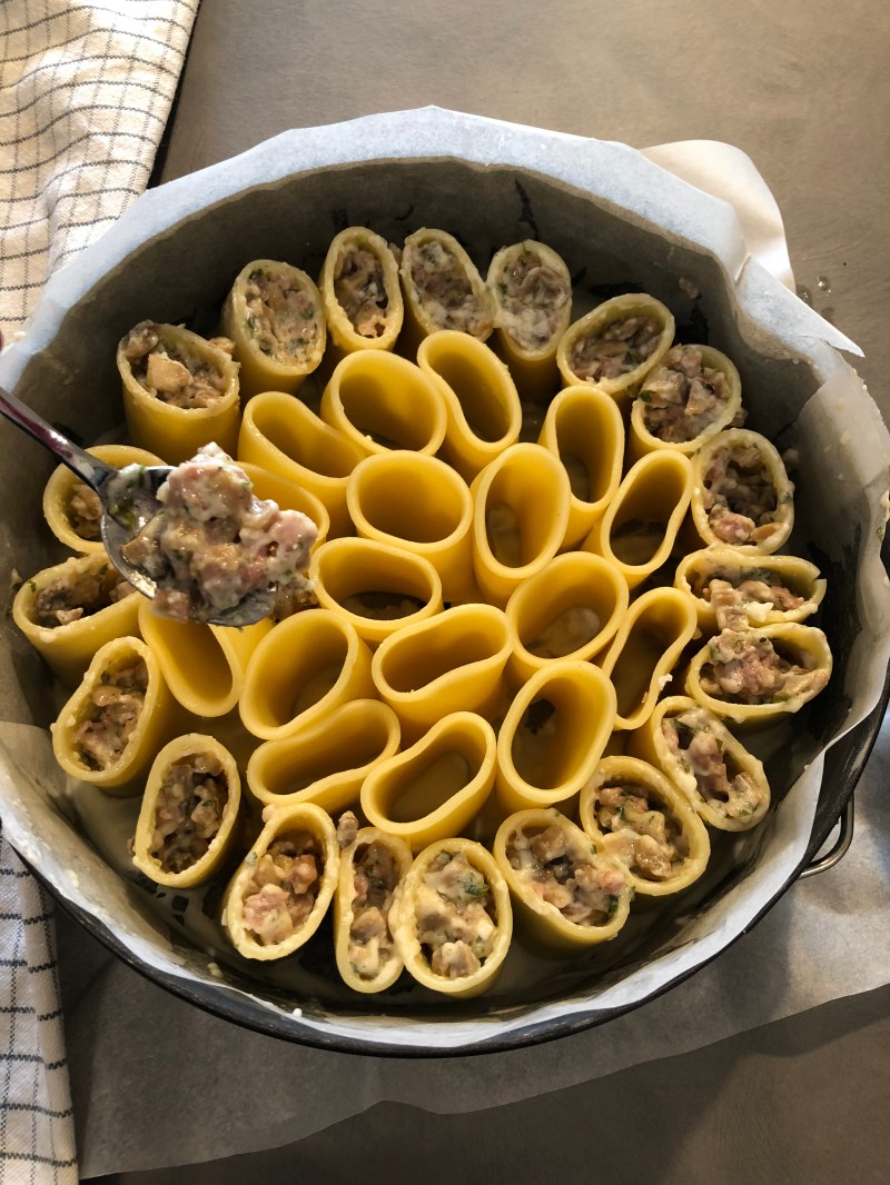 Una buona alternativa alla solita pasta al forno, questa é solo un”dea, questi Paccheri si prestano ad essere farciti in mille modi, con ricotta e spinaci, oppure radicchio rosso, con carciofi e scamorza, insomma via con la fantasia