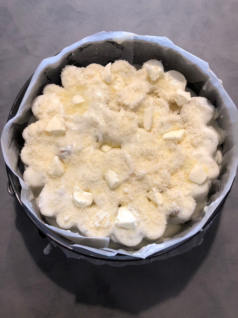 Cospargo con parmigiano e fiocchetti di burro, Inforno a 180 gradi per circa 20 minuti, devono risultare dorati
