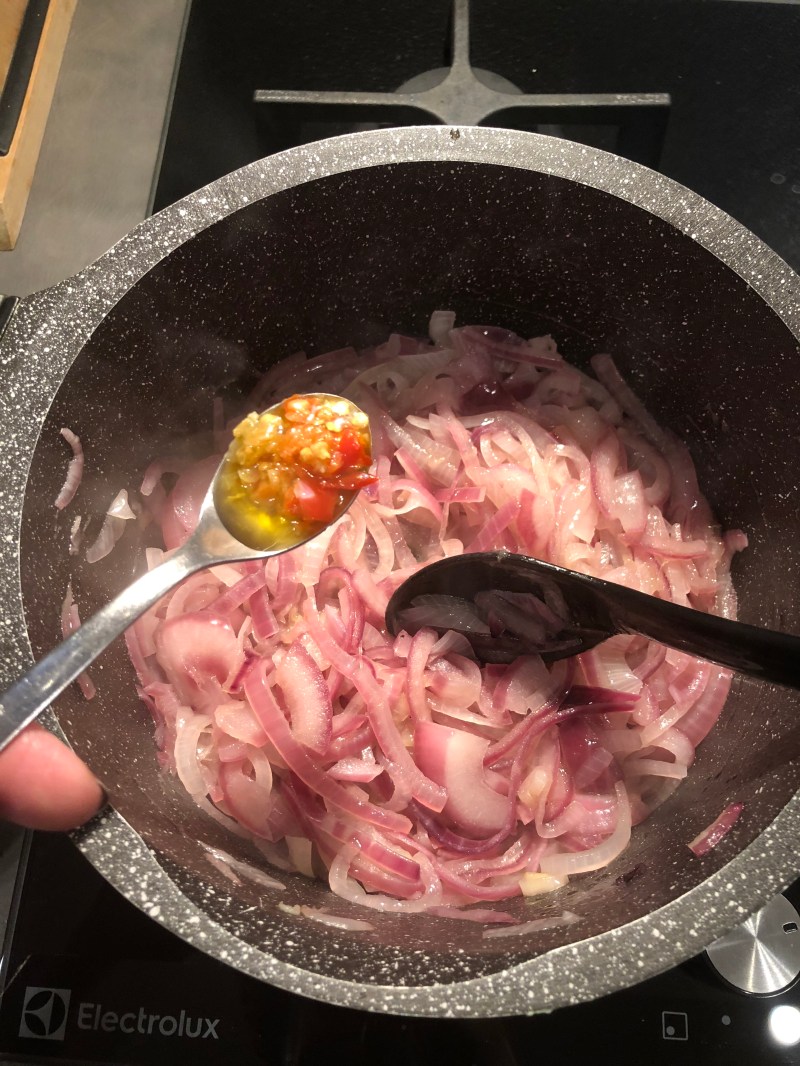 Le lascio rosolare e aggiungo del peperoncino, decidete voi la quantità e la qualità del peperoncino, dipende dal vostro gusto