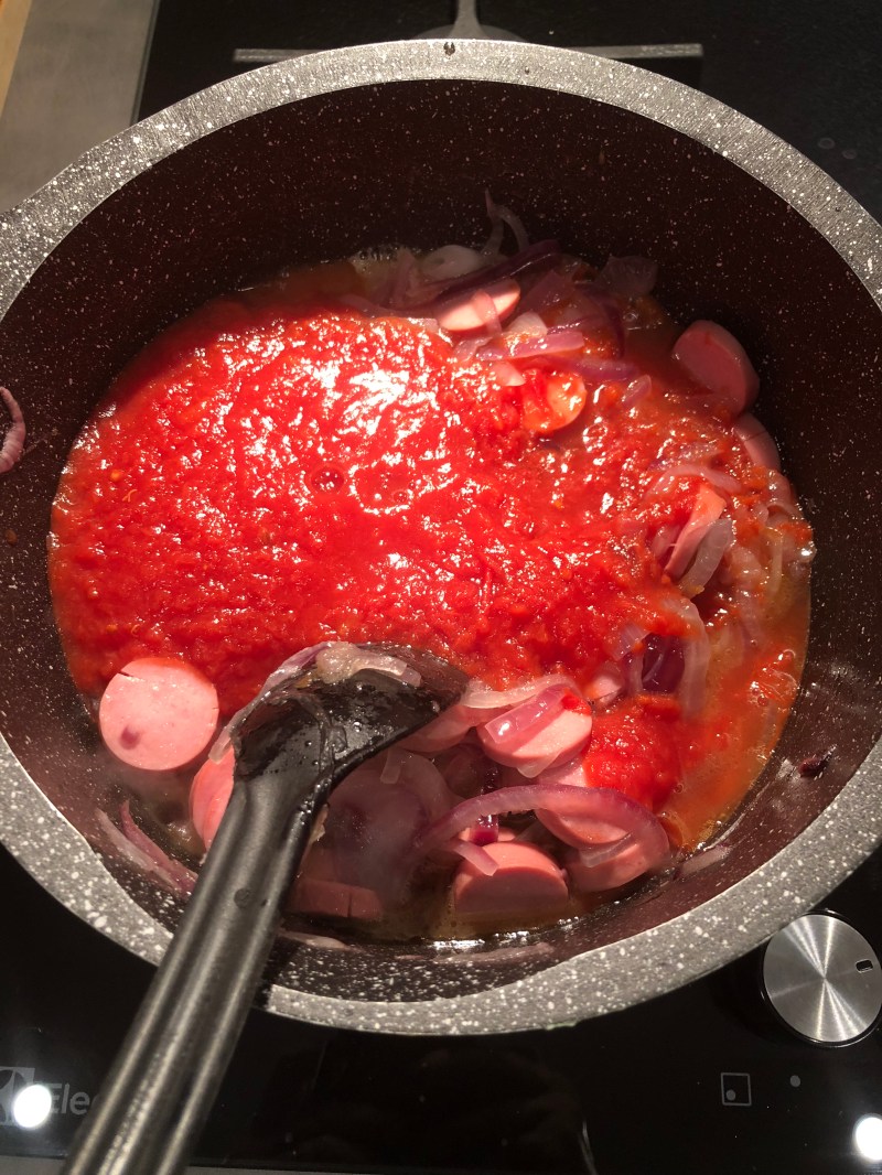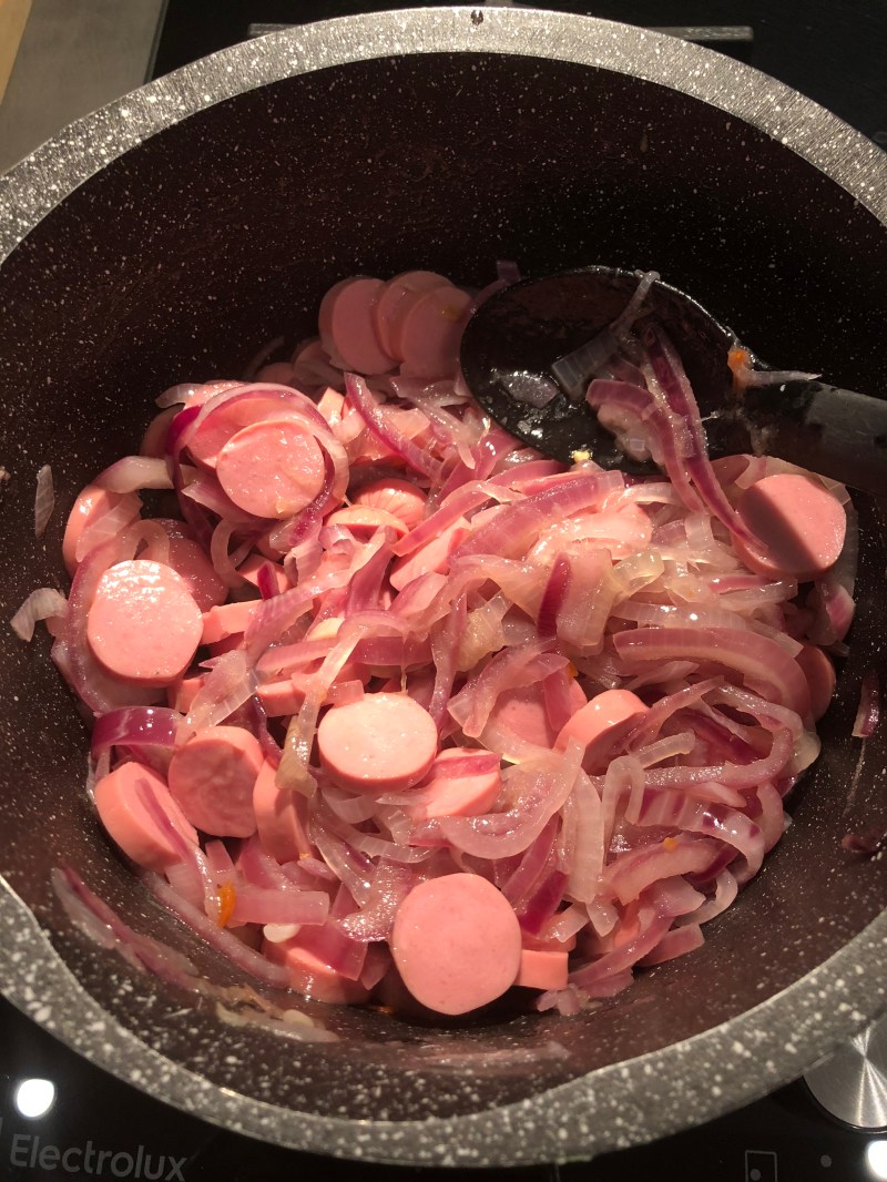Lascio appassire per 5 minuti poi aggiungo i würstel