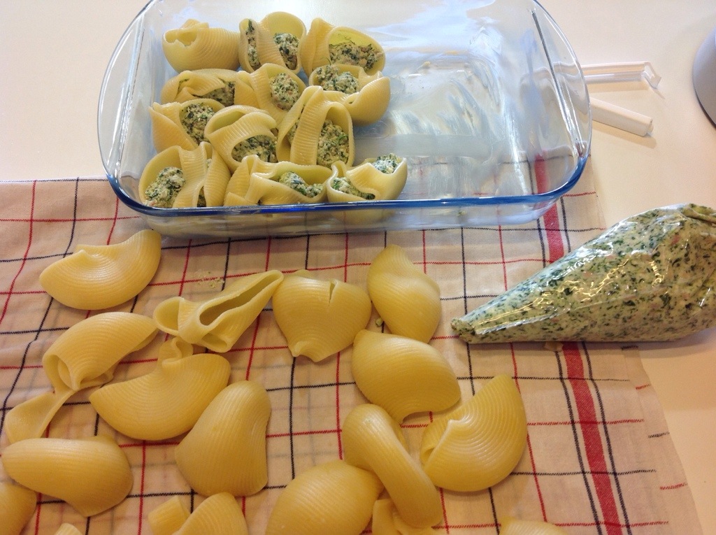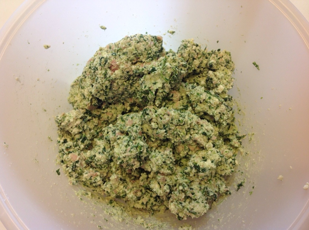 Lesso gli spinaci in acqua salata, li strizzo e li trito ,se volete insaporirli ulteriormente si possono saltare in padella con il burro, li metto in una terrina con la ricotta