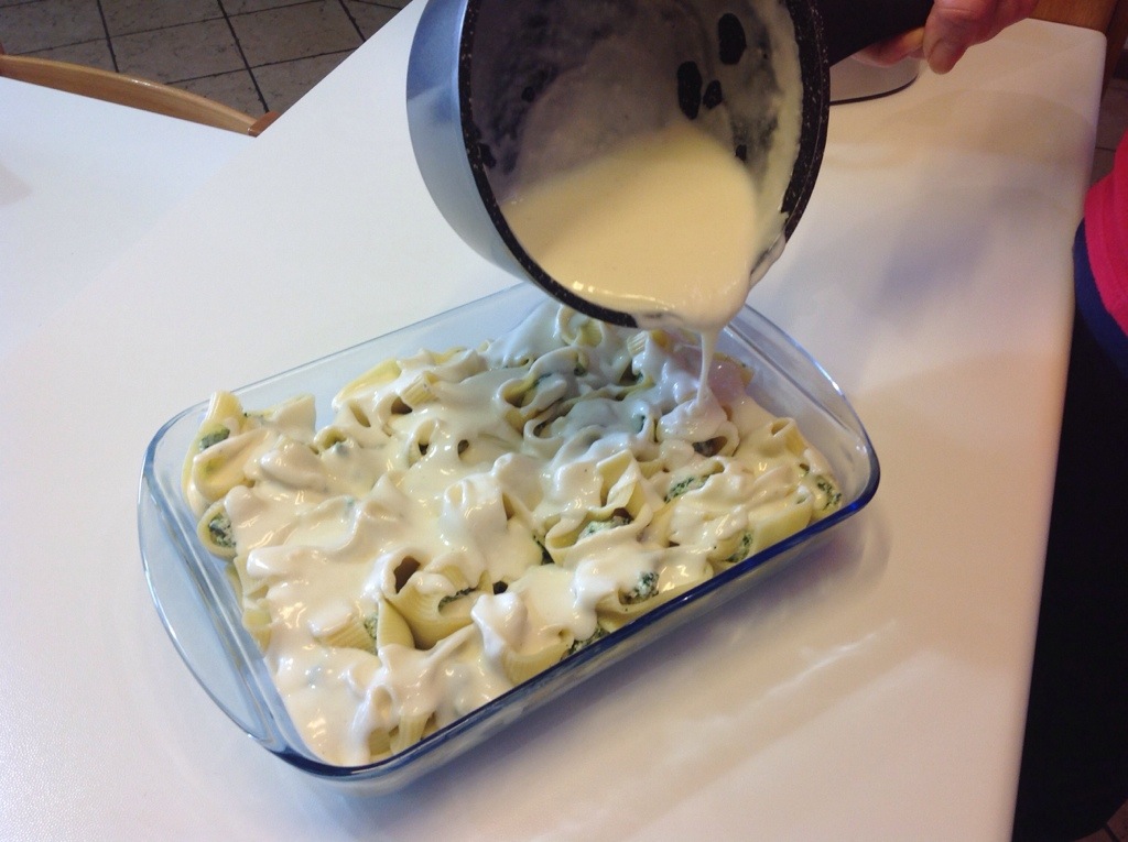 Distribuisco il composto di spinaci in modo uniforme su tutta la superficie