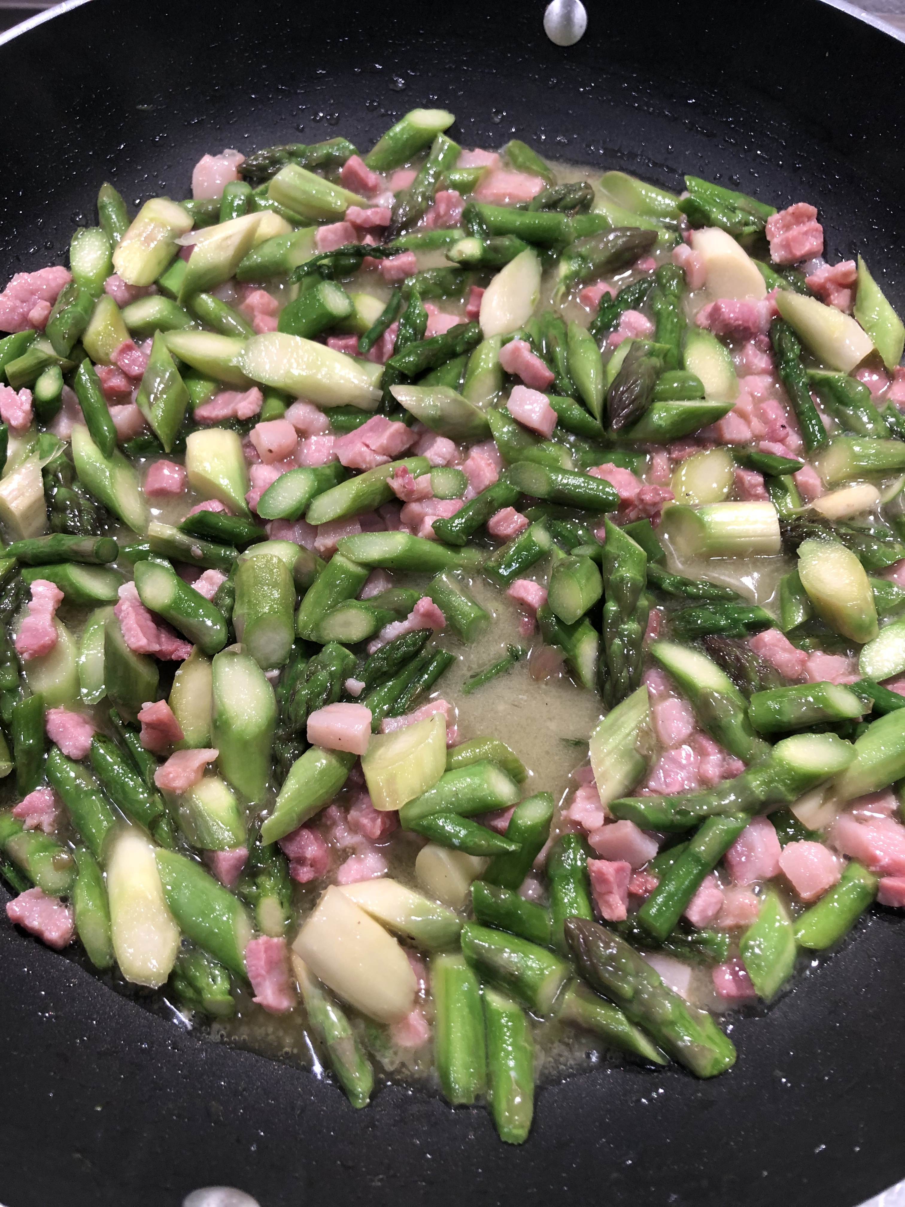 Adesso prepariamo questo sugo per condirli, una ricetta di Fabio Campoli, facile ma molto gustosa, tempo di asparagi, ricetta ideale!