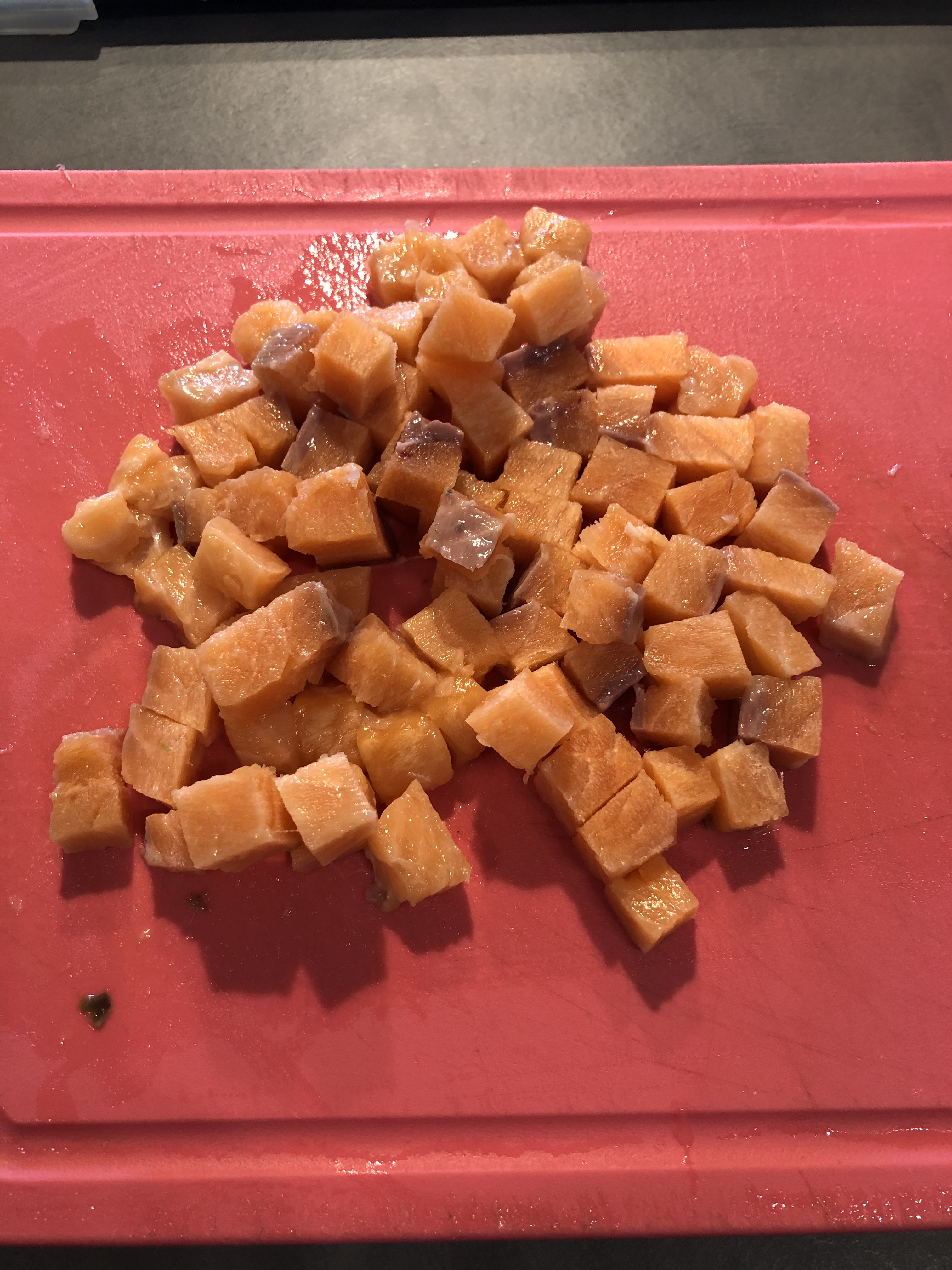 Pulisco la zucca e la taglio a cubetti