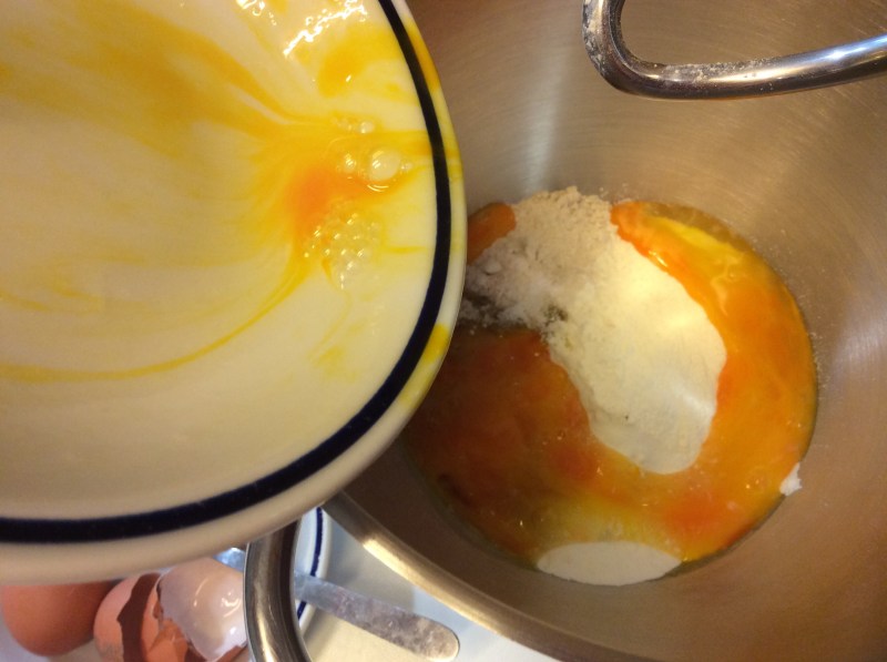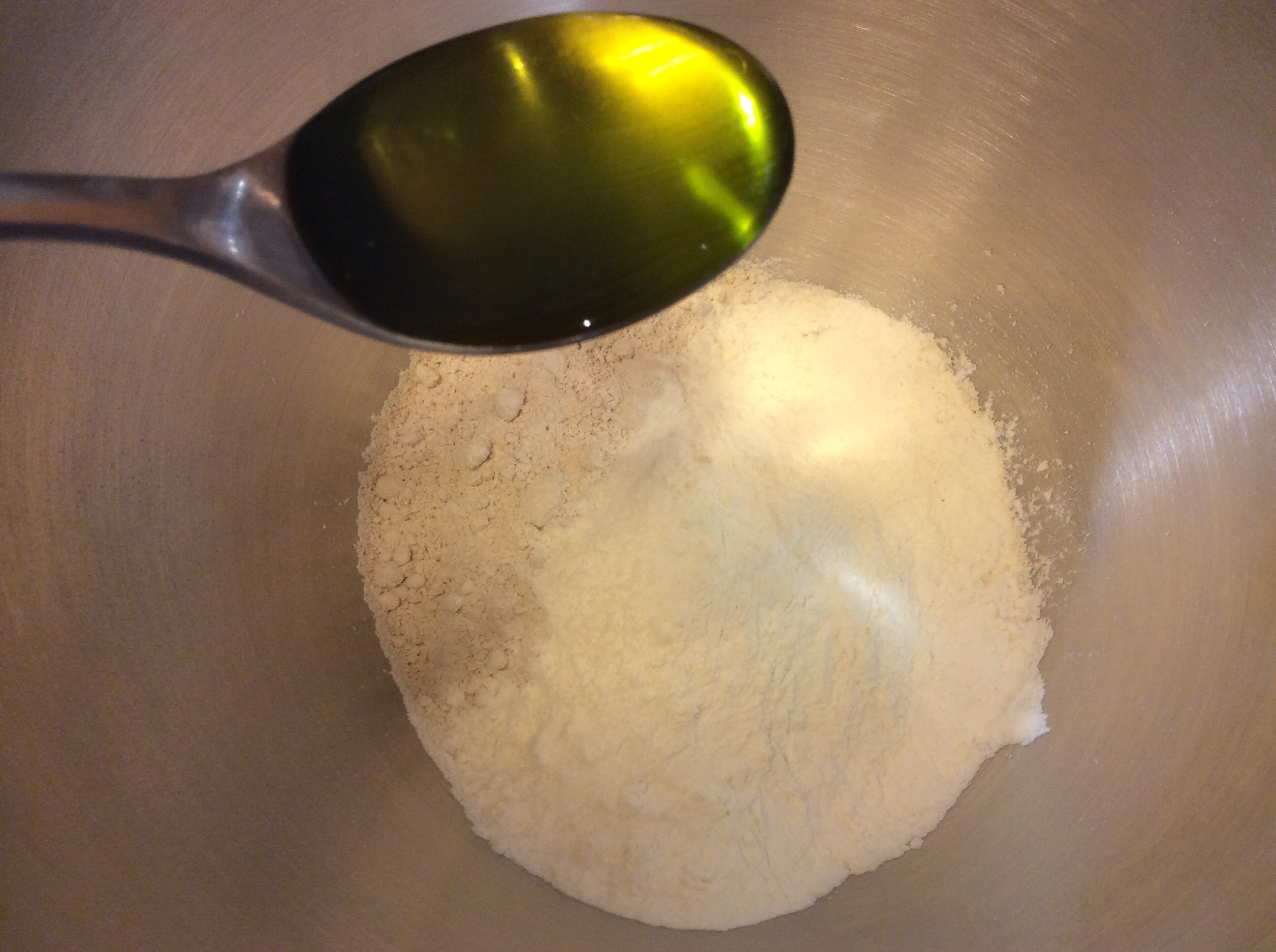 Dispongo la farina sulla spianatoia e formo un incavo al centro rompendo le uova e aggiungo un cucchiaio di olio, io non aggiungo sale