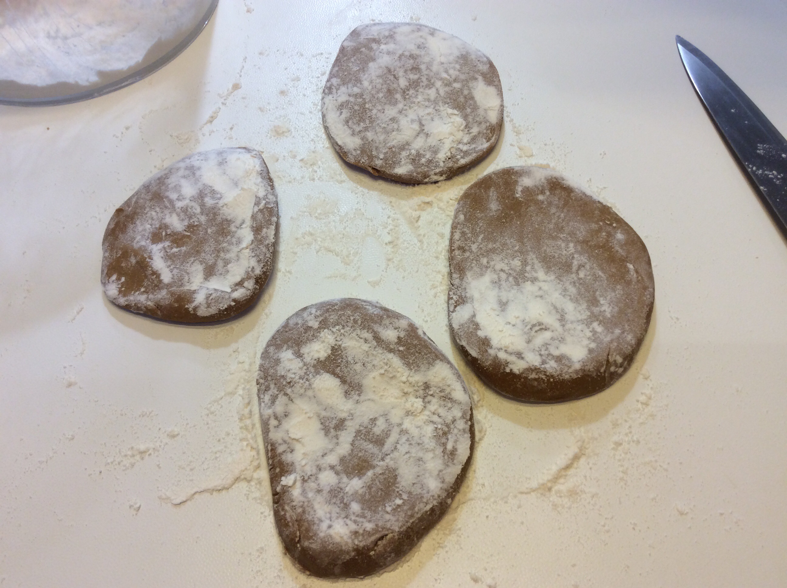 Trascorso il tempo di riposo taglio la pasta in piccoli pezzi li appiattisco e li infarino abbondantemente