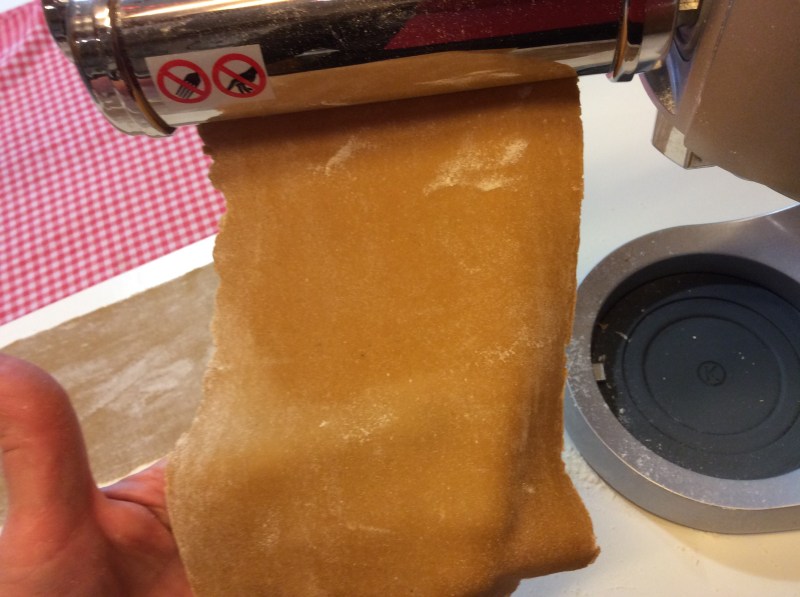 A questo punto inserisco la sfoglia nella trafila dei tagliolini