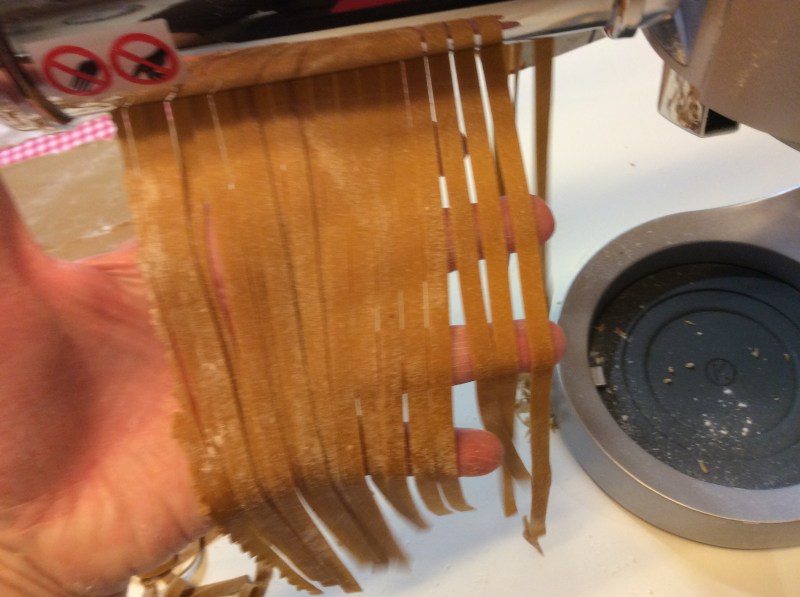 Poi stringo i rulli e li ripasso nuovamente fino alla misura desiderata, comunque i tagliolini non vanno troppo sottili