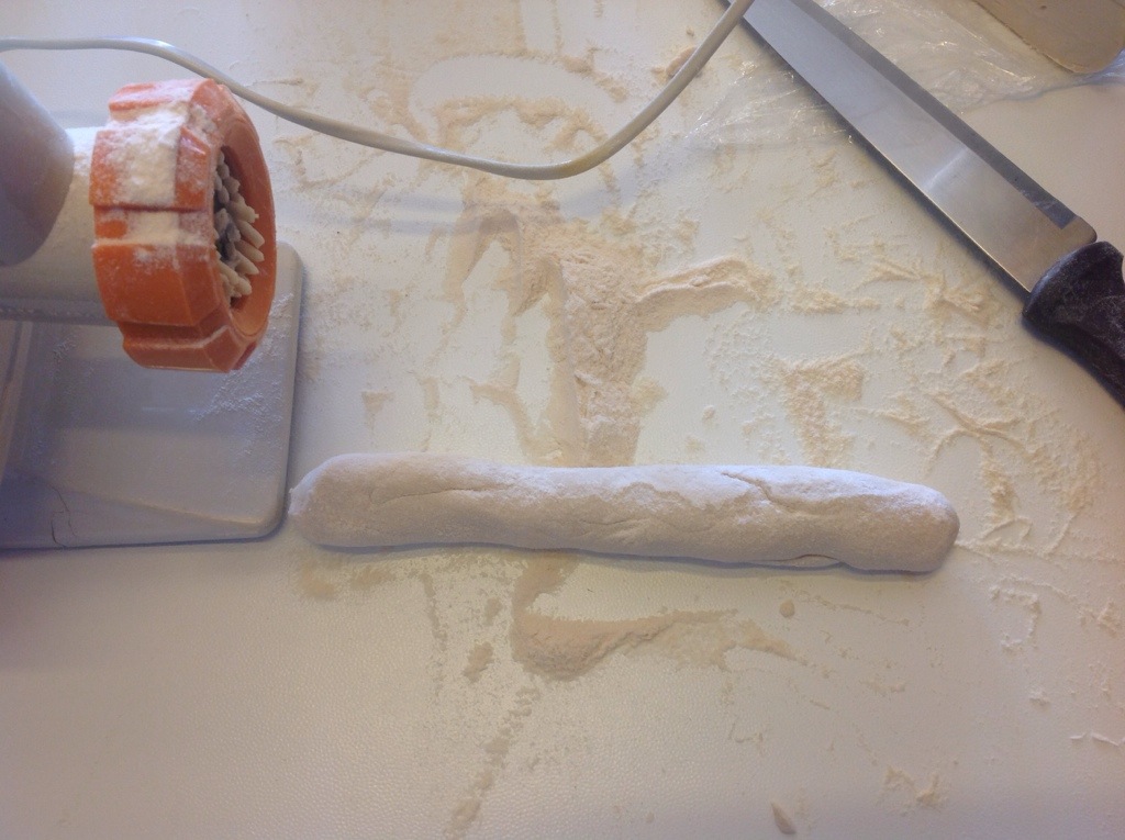 Taglio un pezzo di pasta faccio un salsicciotto e lo infarino molto bene con la farina di grano duro