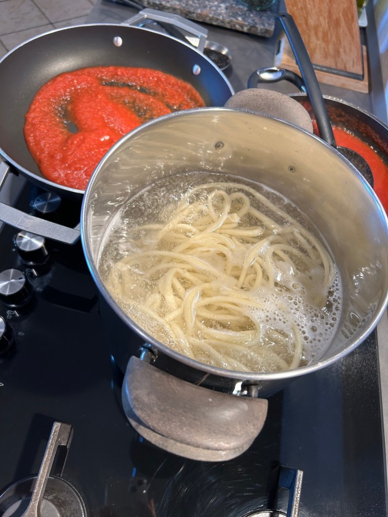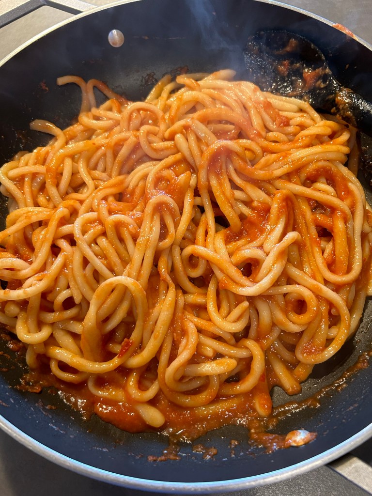 Le tengo da parte e nella stessa padella salto velocemente i pomodori e tengo da parte