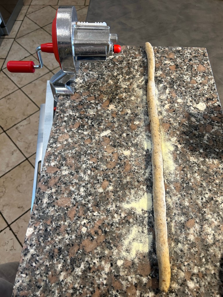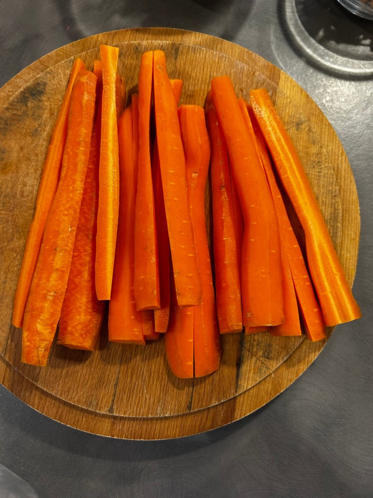 Taglio fettine di circa mezzo cm fino all’incavo per avere delle fettine perfette, le ungo di olio, un pizzico di sale e pepe