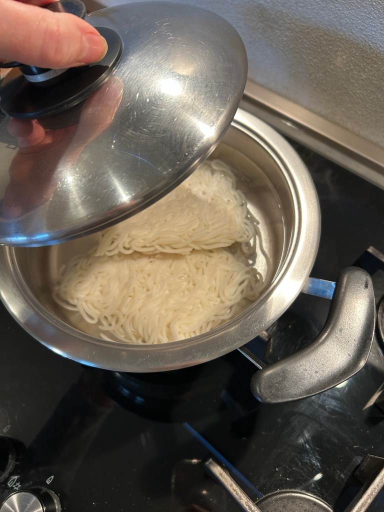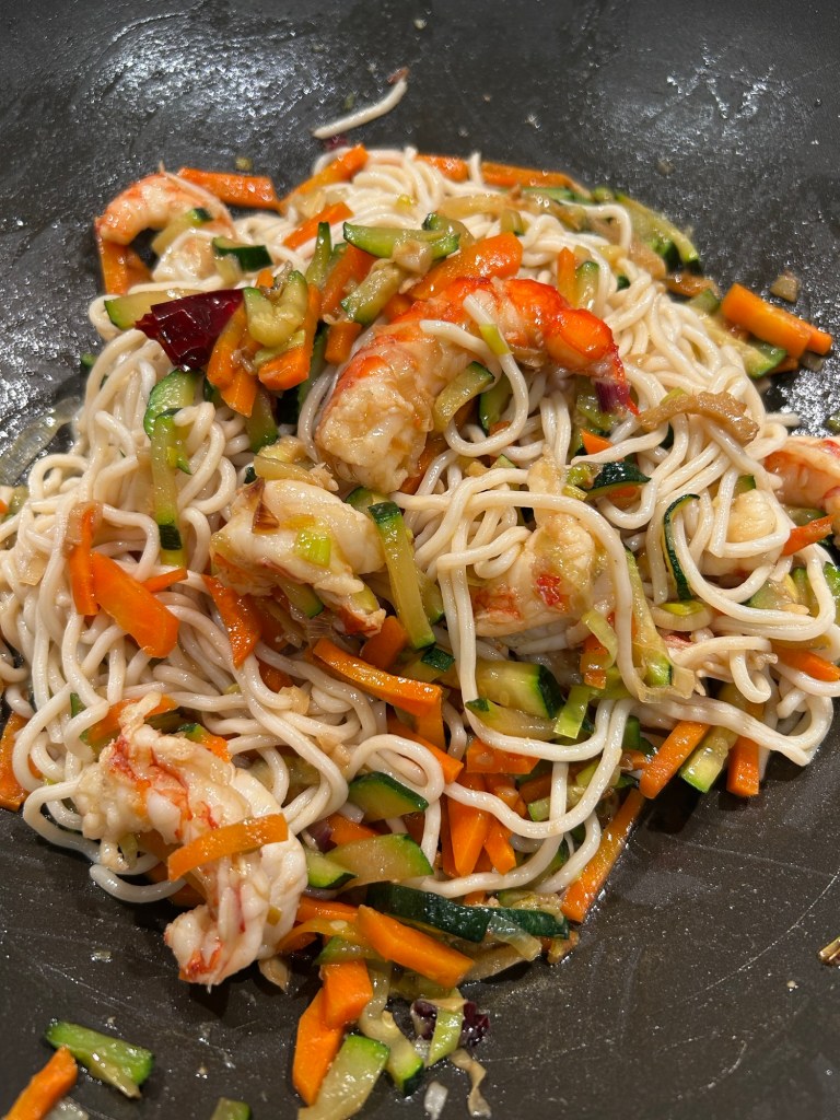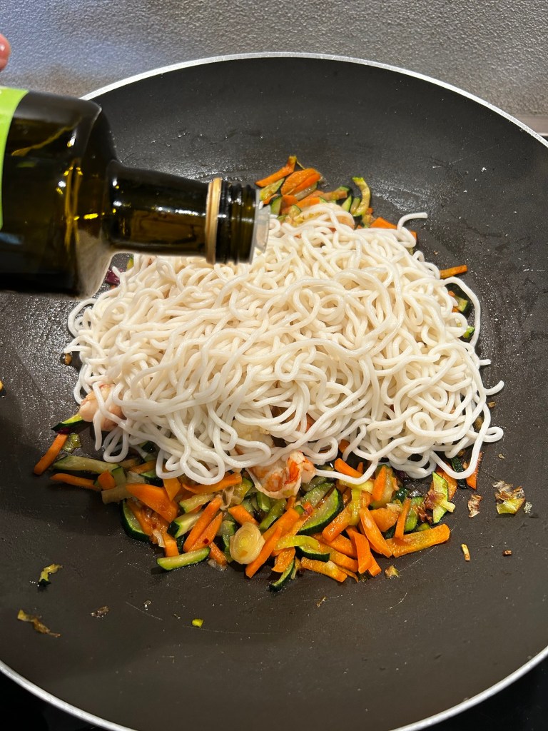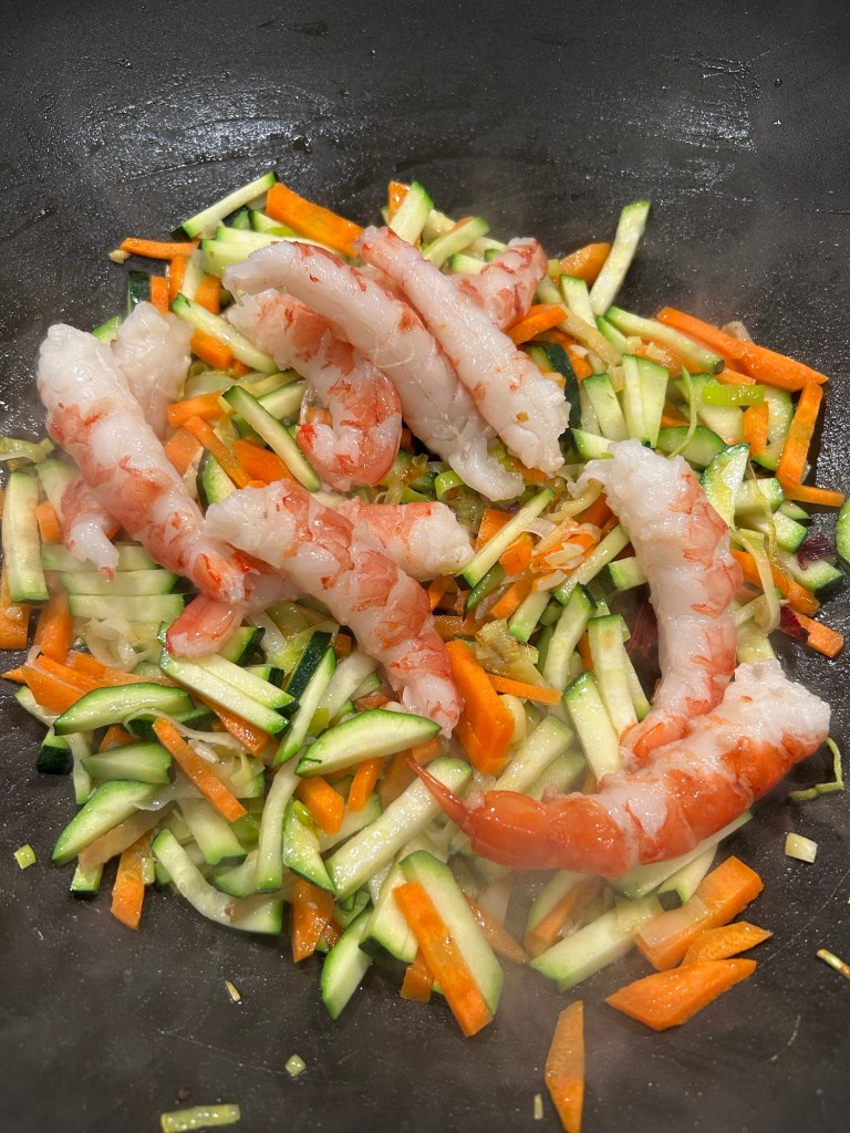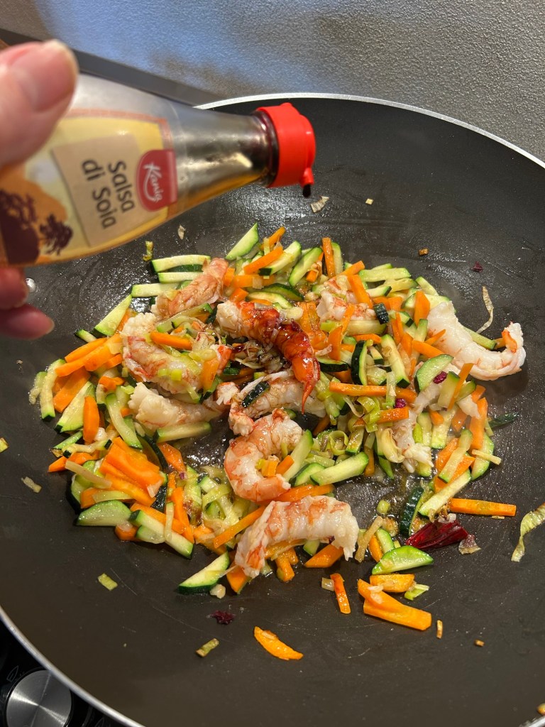 In una padella larga che dovrà poi contenere il cous cous verso un filo di olio e salto velocemente le code, salo leggermente