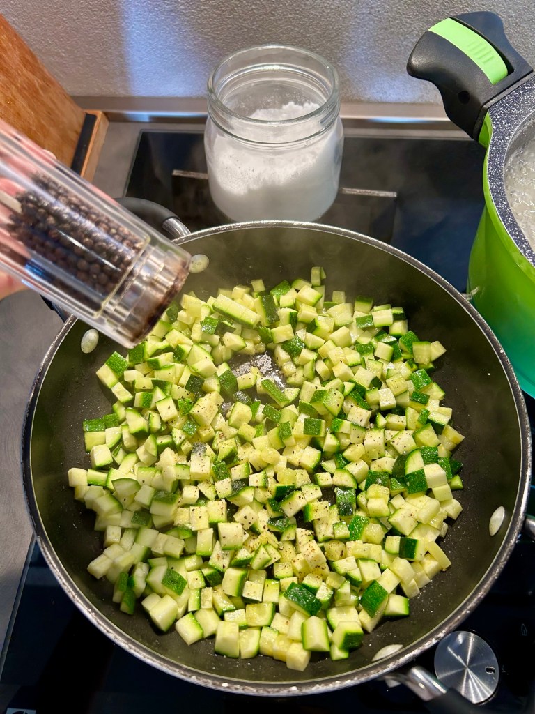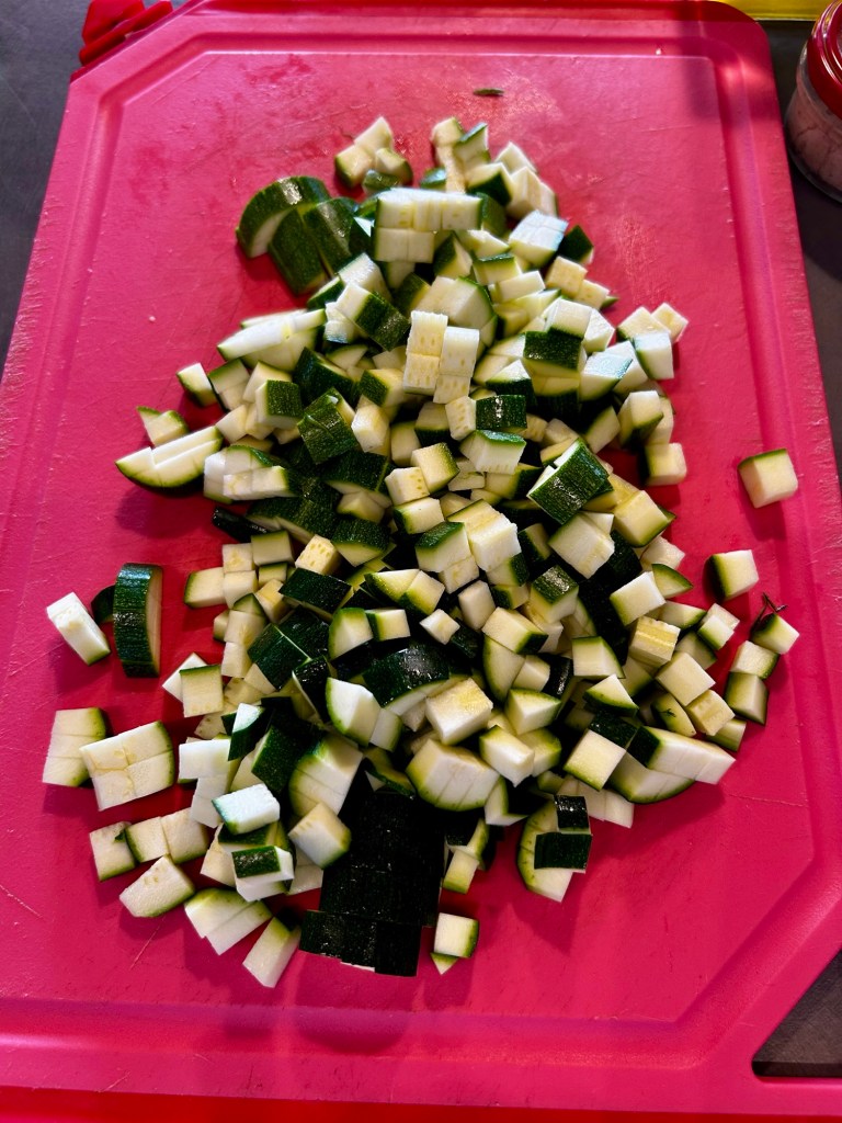 Intanto preparo le verdure, io ho utilizzato le zucchine, le melanzane e i peperoni di una ricetta precedente che avevo semplicemente grigliate, le ho poi tagliate a dadini piccoli, le dosi sono indicative, potete aggiungerne più o meno a vostro gusto e aggiungerne di nuove