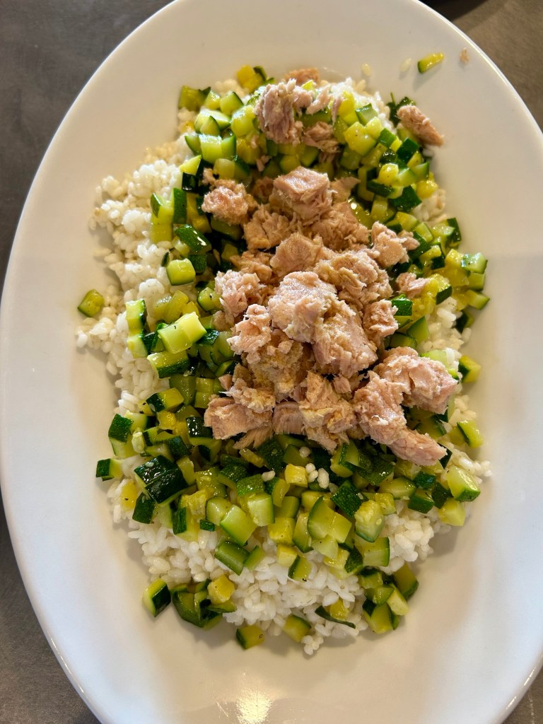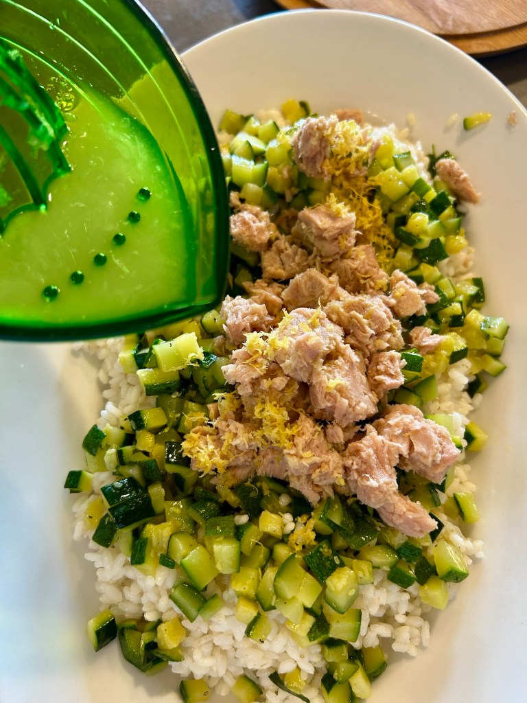 Lo aggiungo alle verdure, mescolo e aggiungo un filo di olio, se serve un paio di cucchiai di acqua, scaldo la preparazione e servo caldo