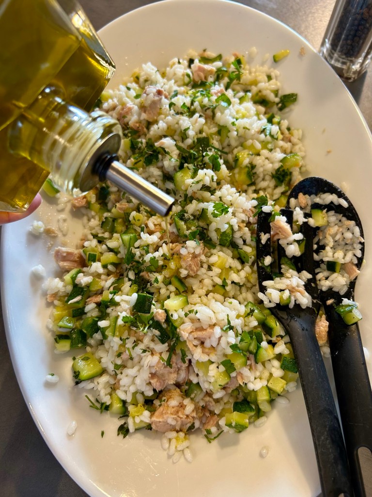 Con una forchetta sgrano in cous cous che si é ormai reidratato