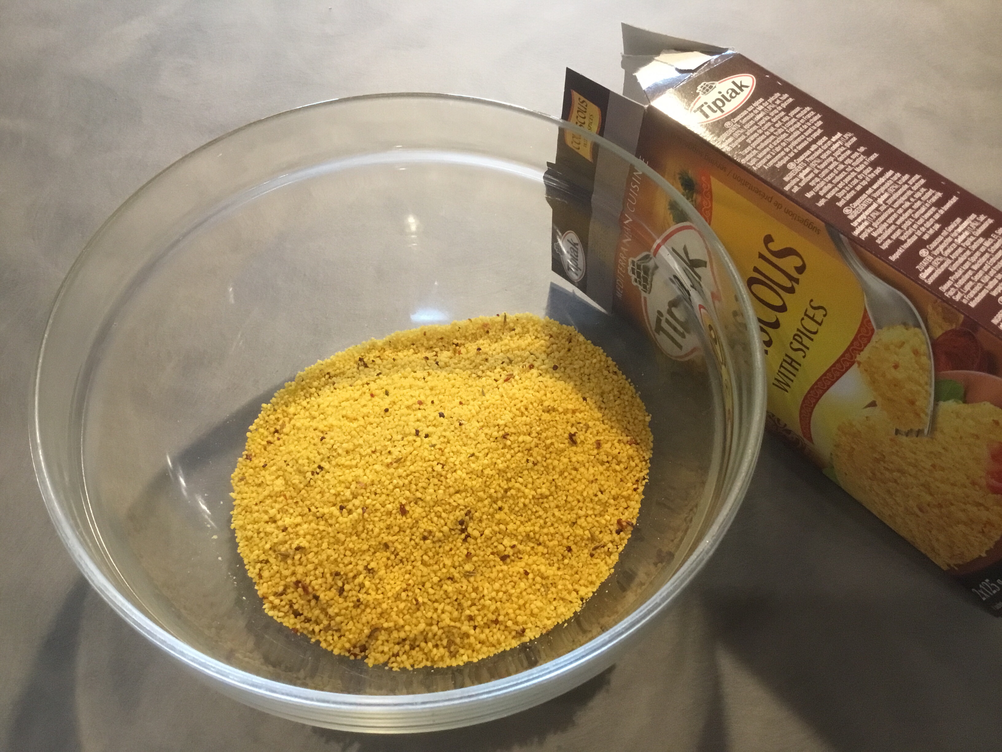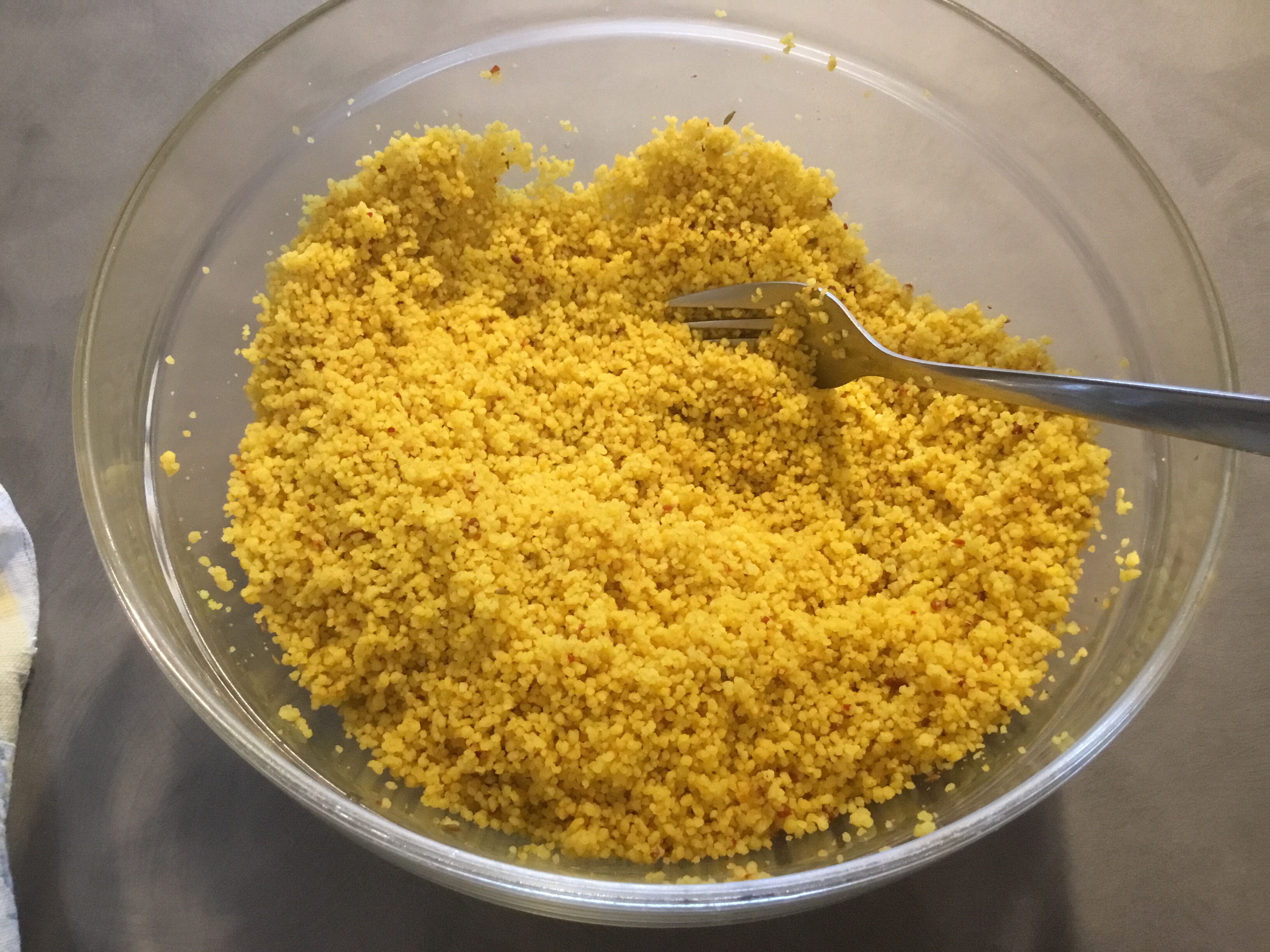 Con una forchetta sgrano in cous cous che si é ormai reidratato