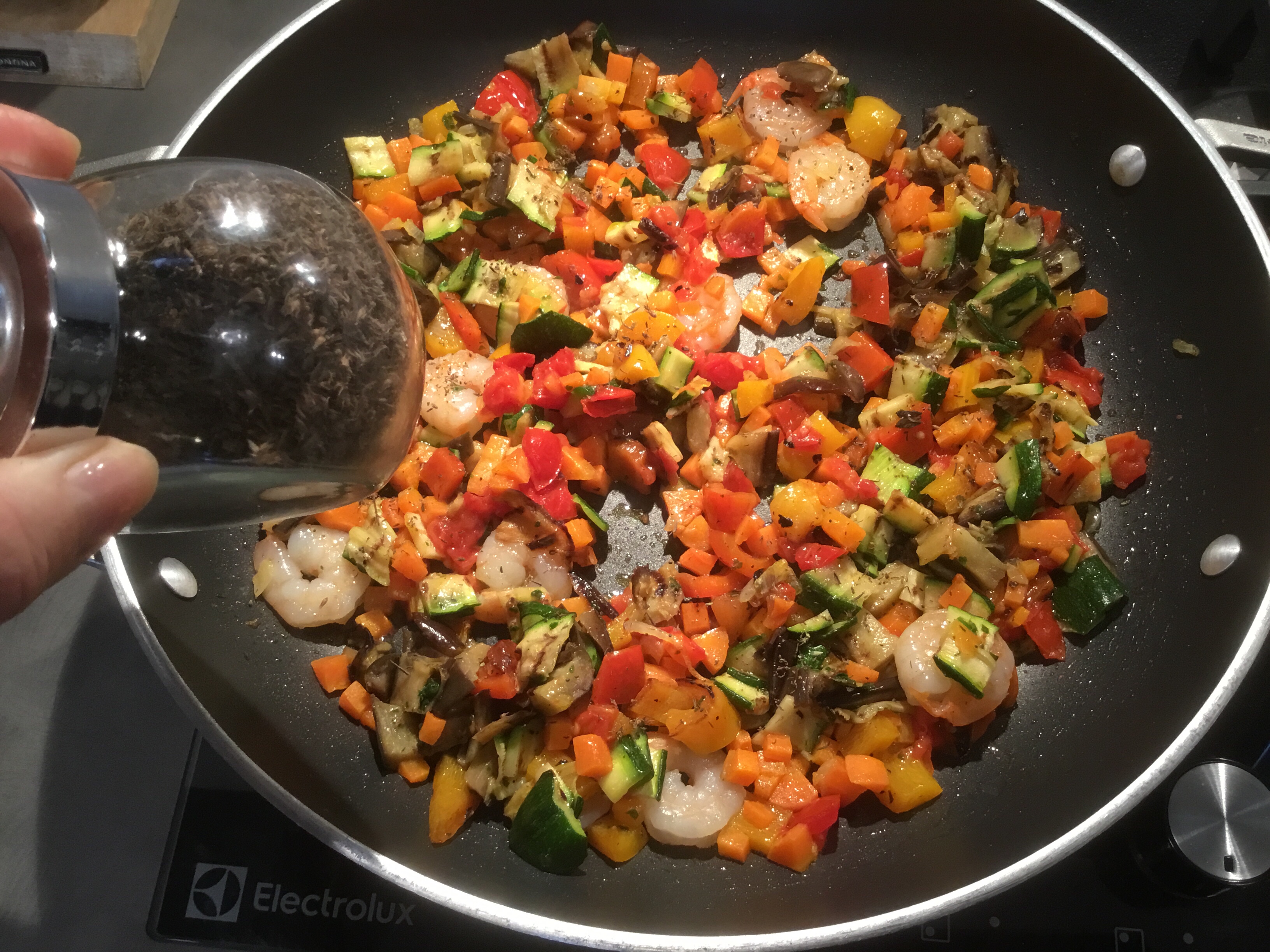 Aggiungo tutte le verdure, regolo di sale e aggiungo l”origano