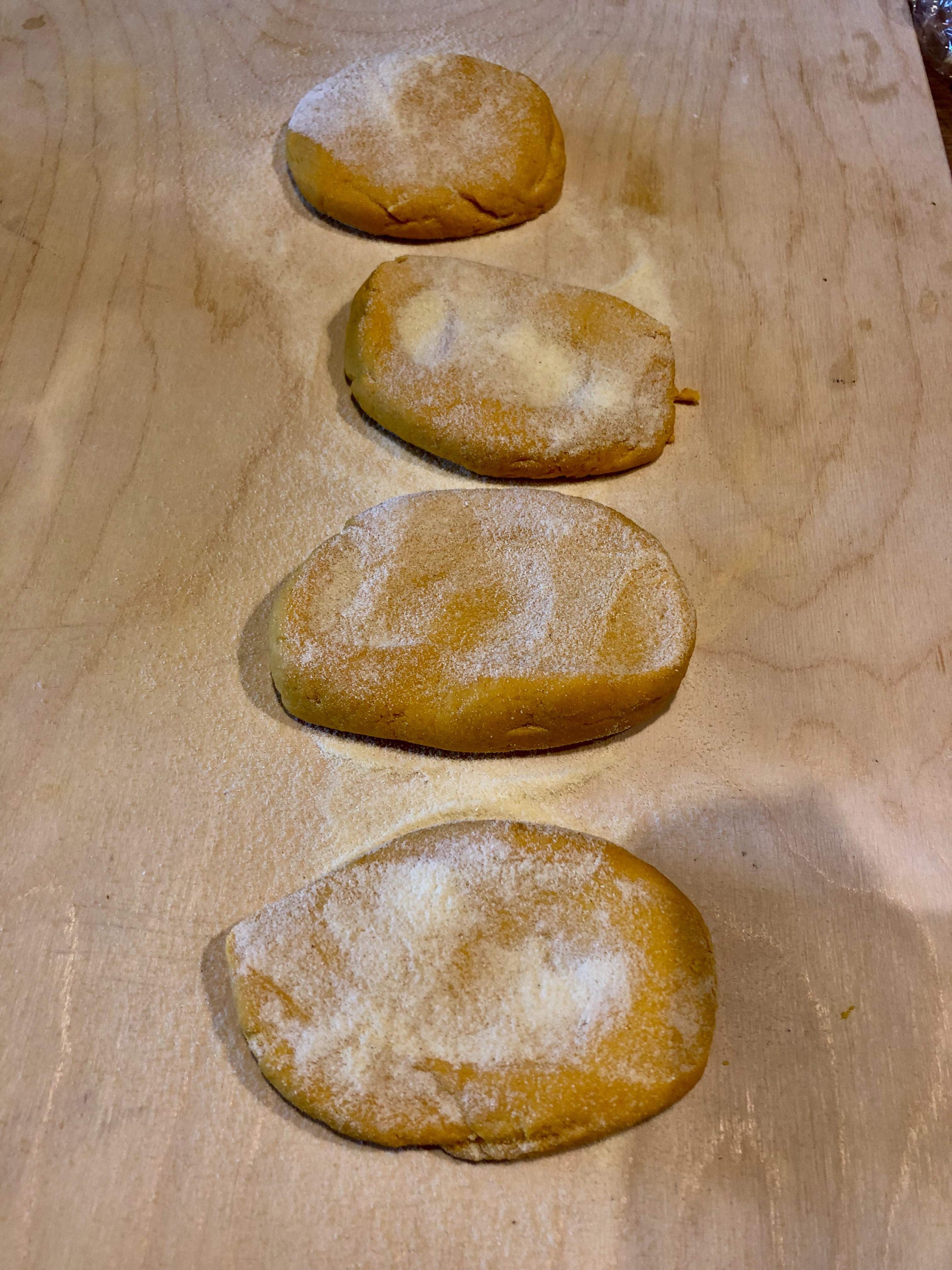 Li appiattisco e infarino con la farina di semola di supporto