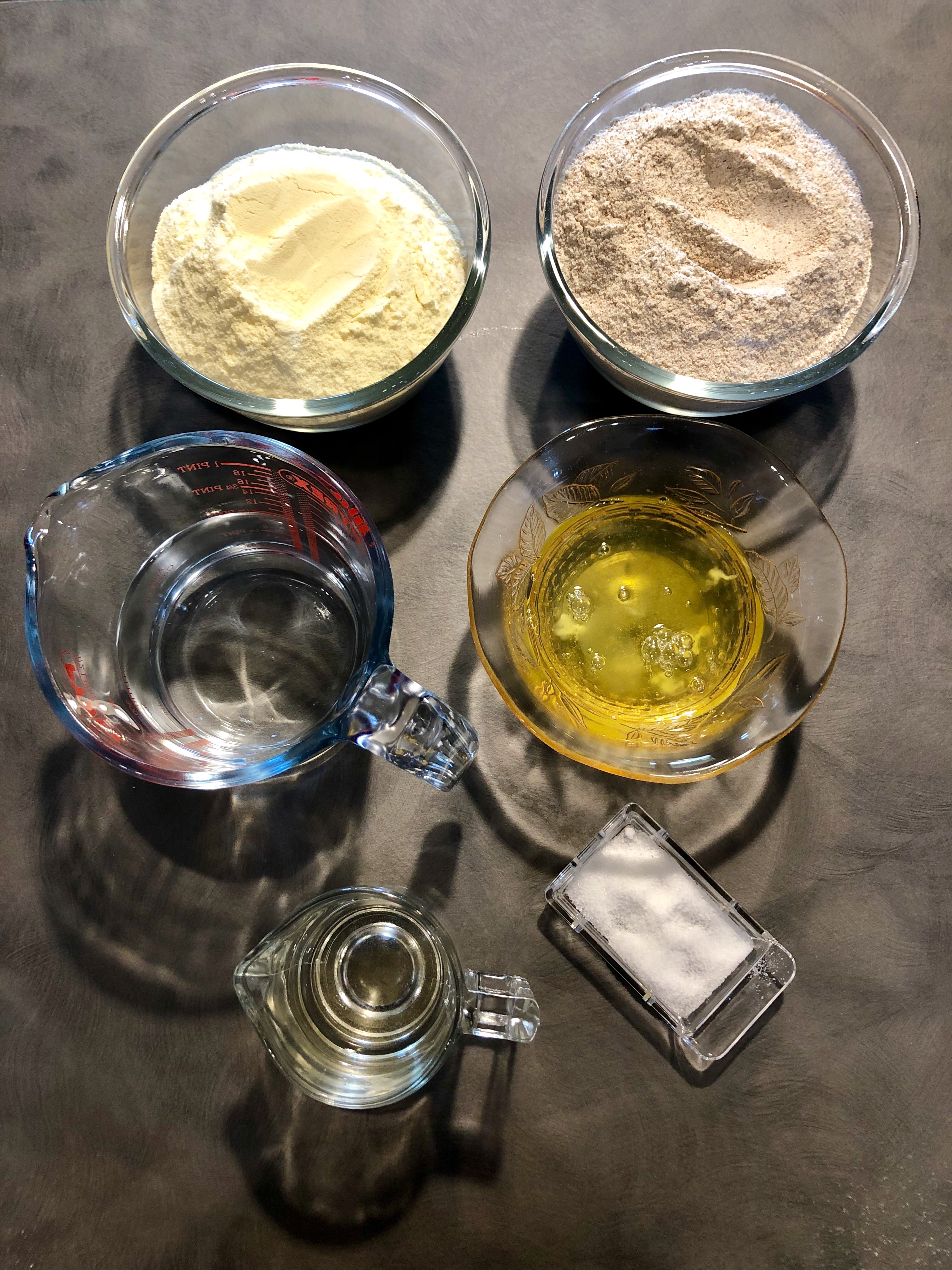 Potete impastare a mano ma se avete un’impastatrice farete molto velocemente, verso le due farine nel cestello della planetaria con il sale