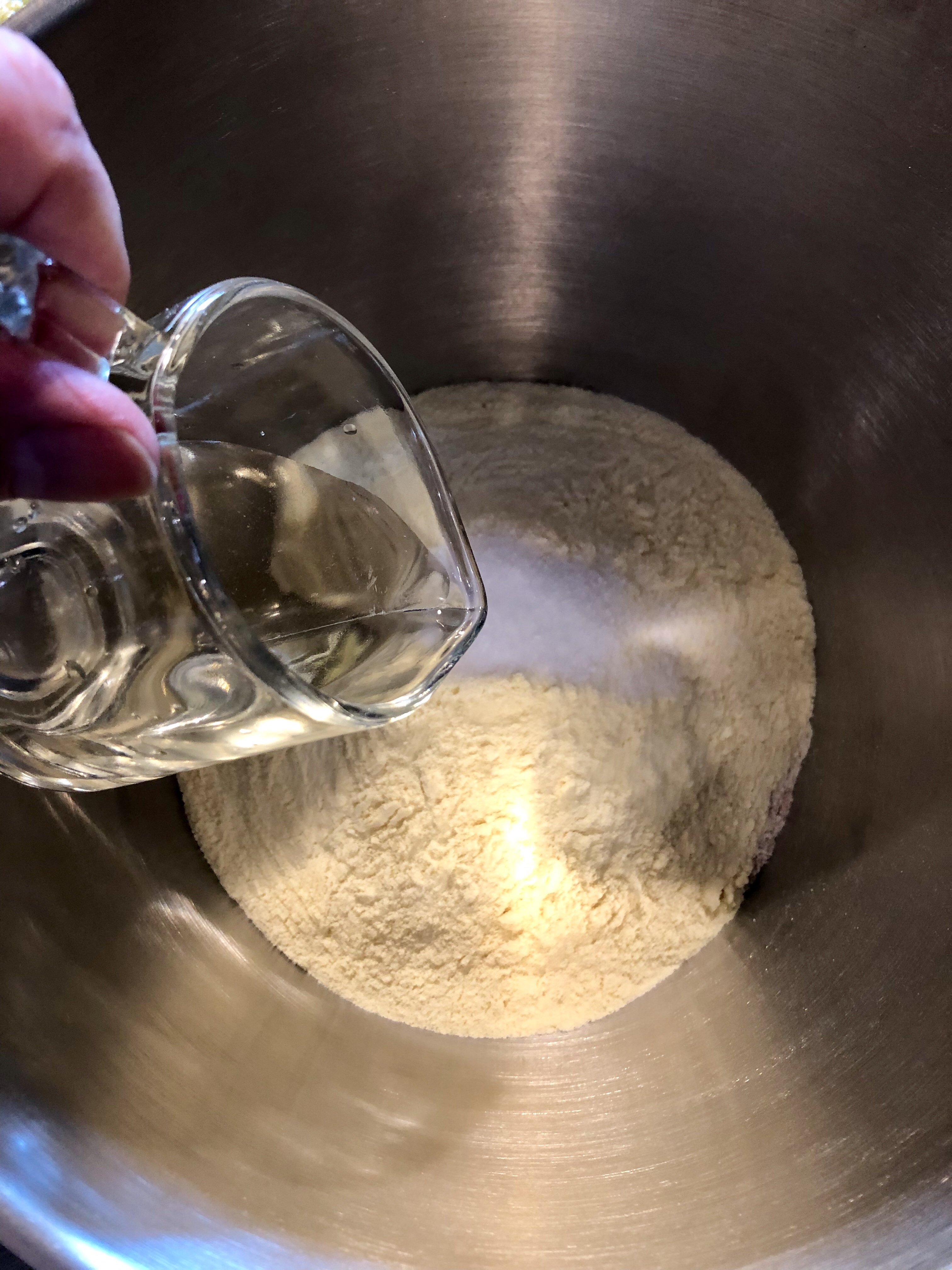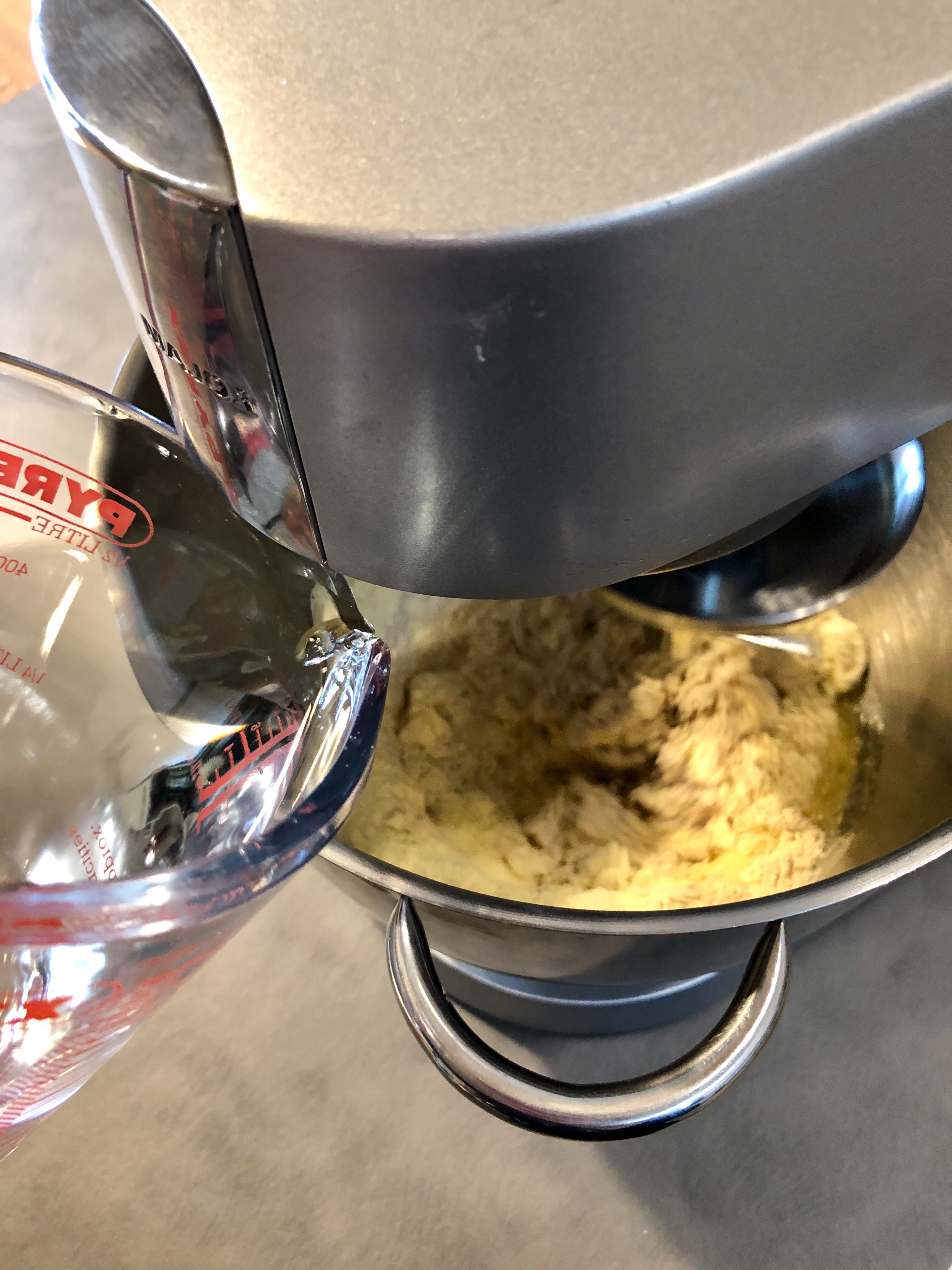 Monto il gancio ed Inizio ad impastare e aggiungo poco per volta l’acqua