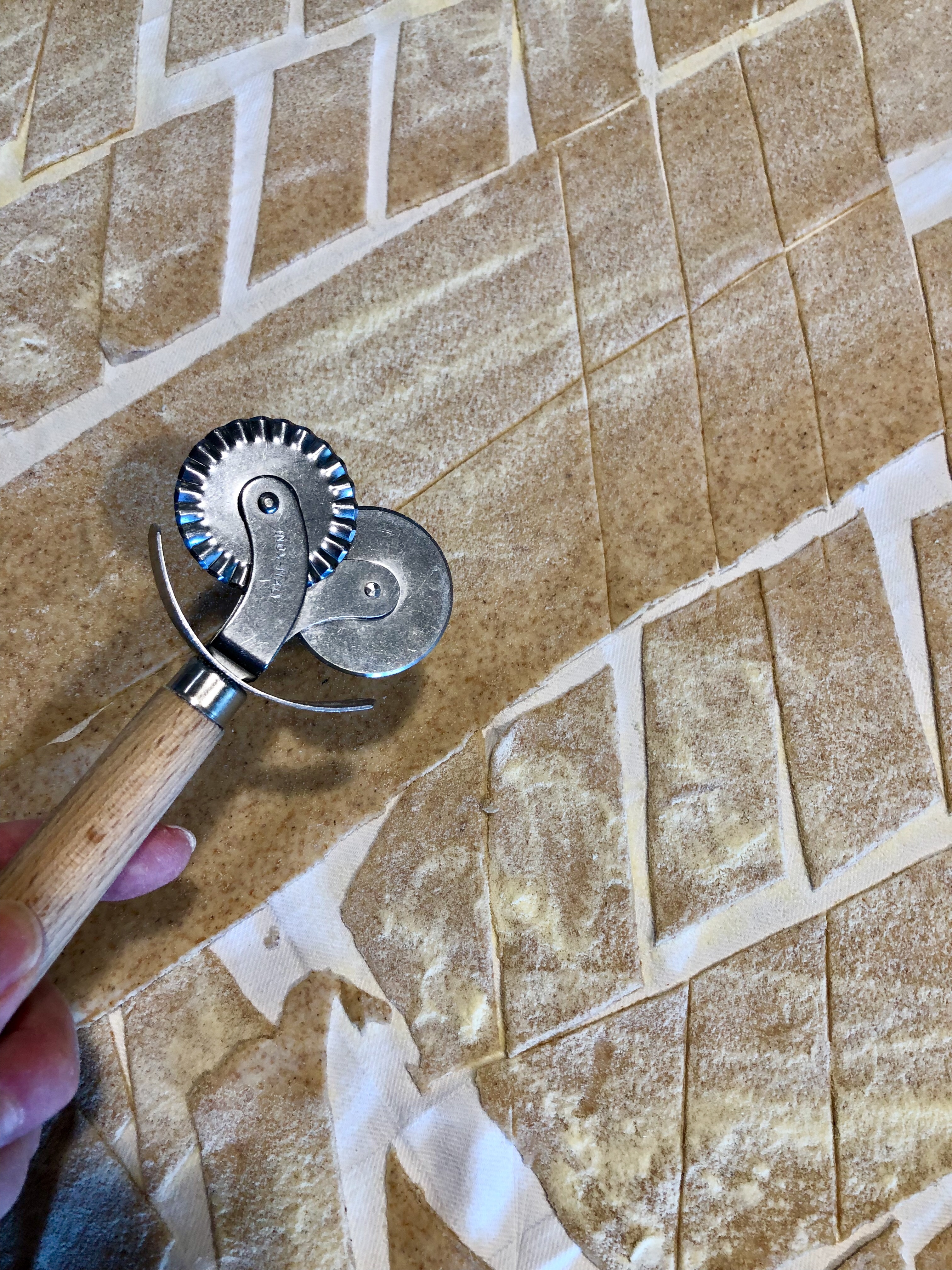 Dopo che la pasta ha riposato la riprendo e la taglio in piccoli pezzi