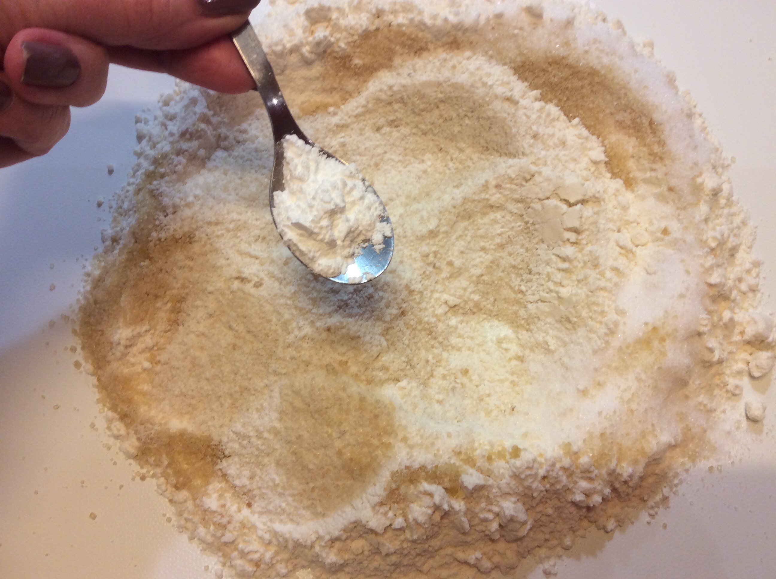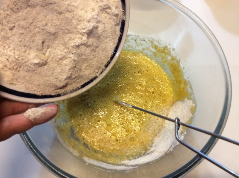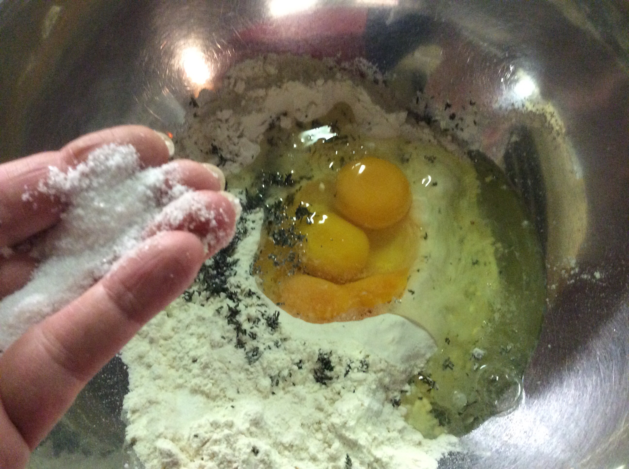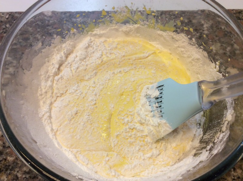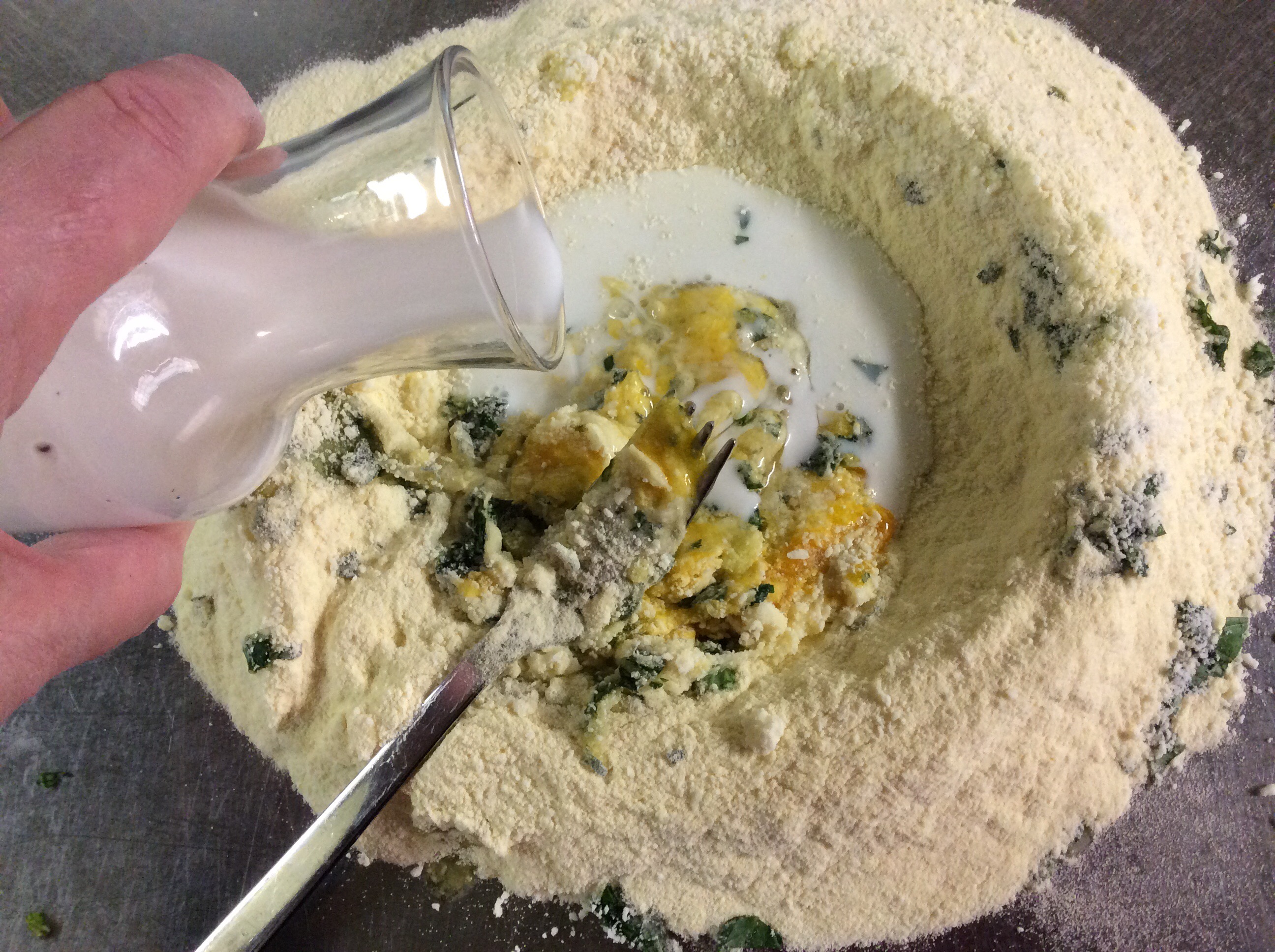 Inizio ad incorporarli alla farina con una forchetta, aggiungo poco per volta l’acqua