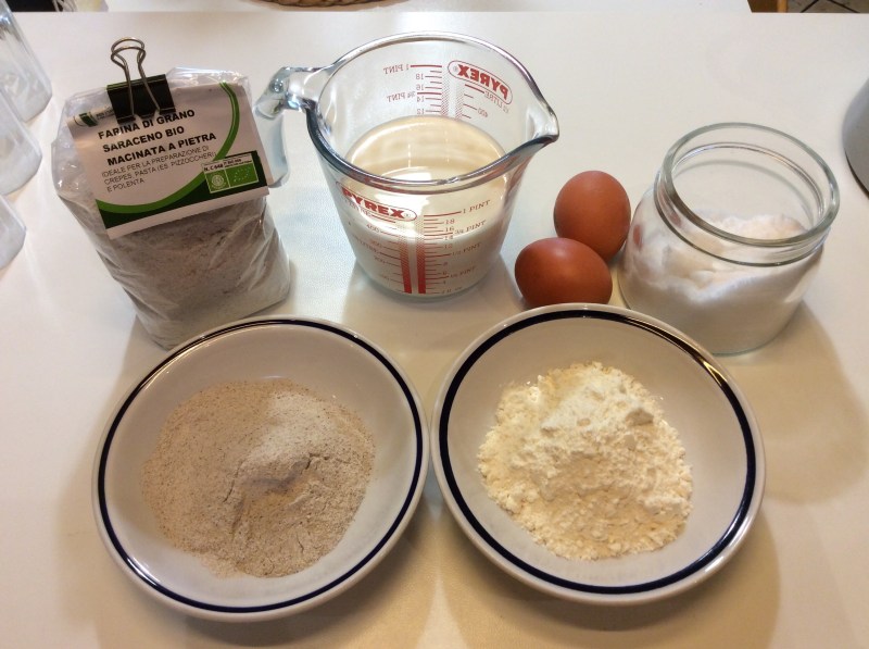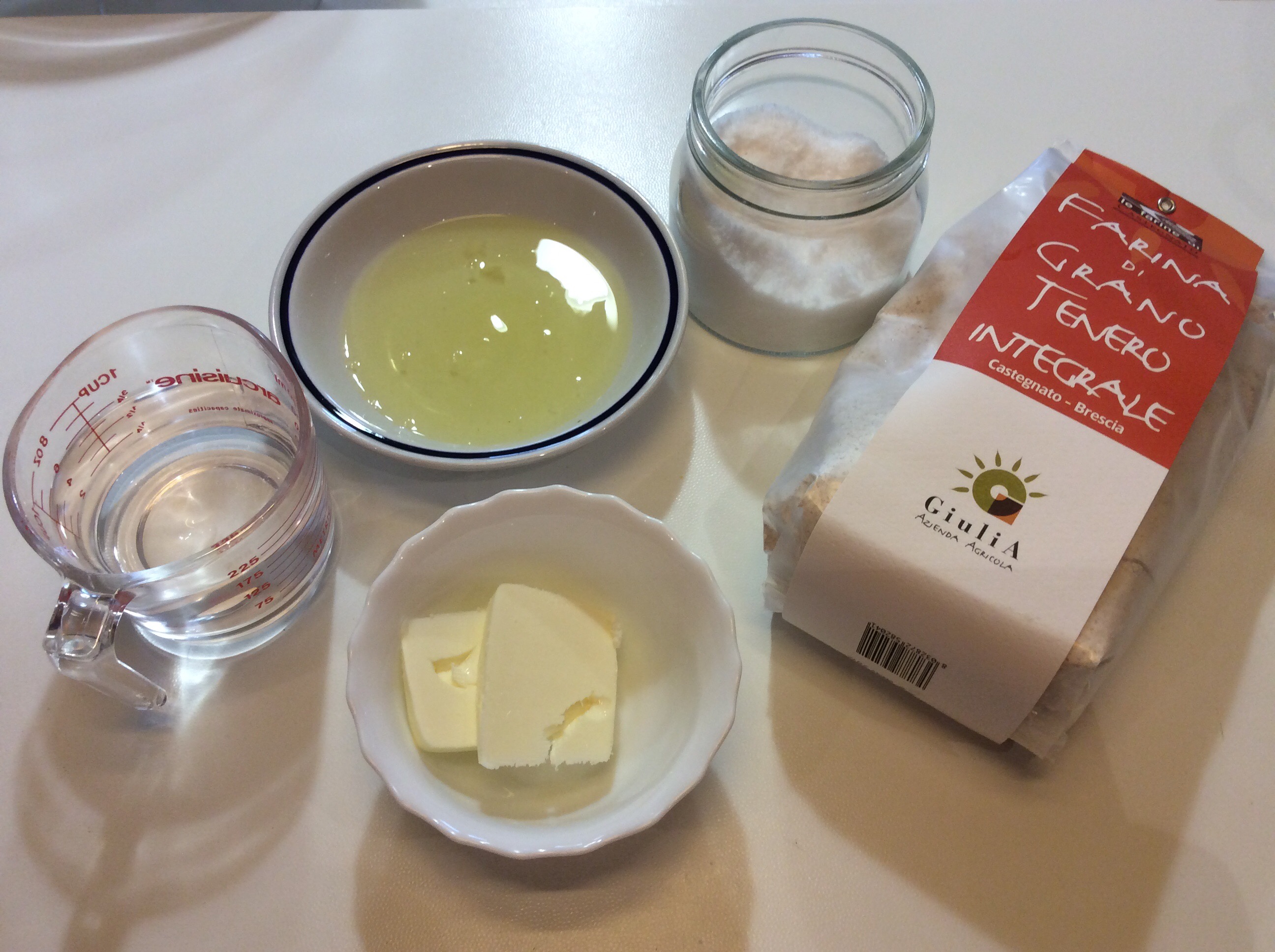 400 gr di farina integrale, (oppure 200 gr integrale e 200 gr 00)