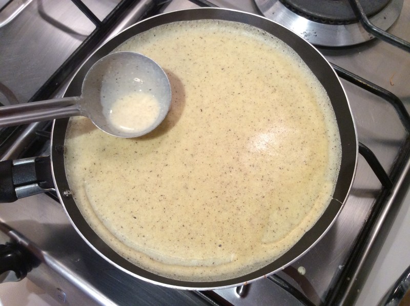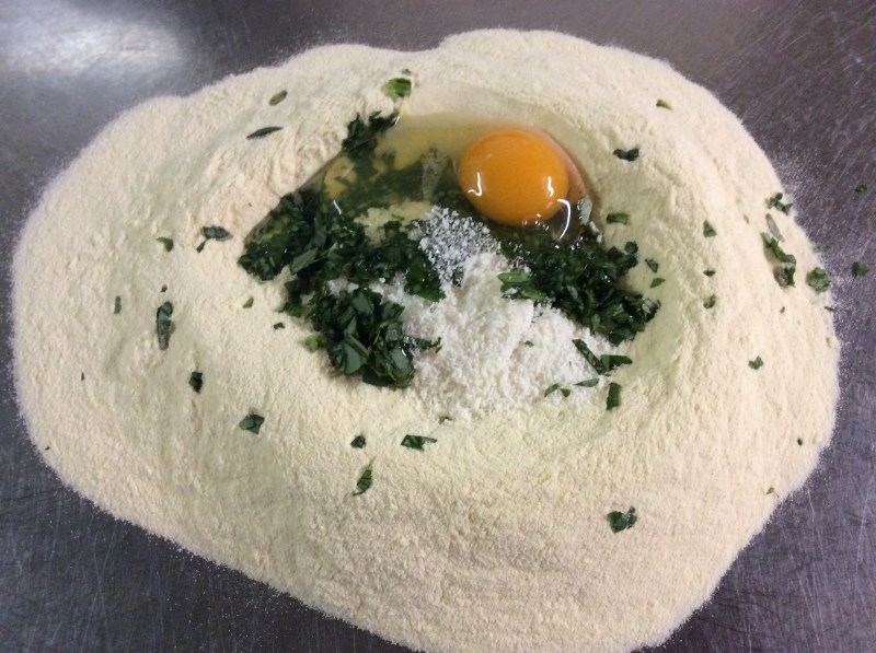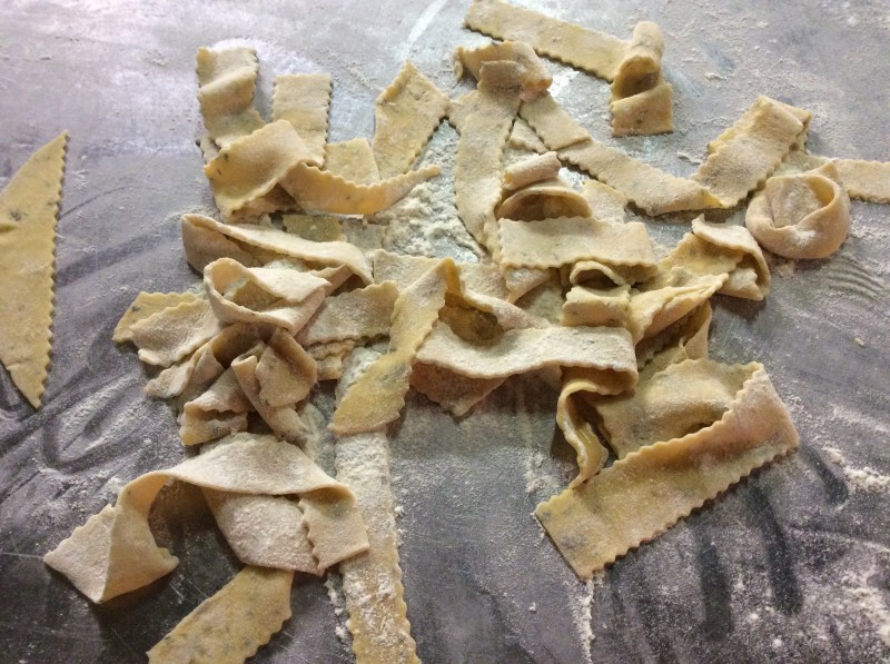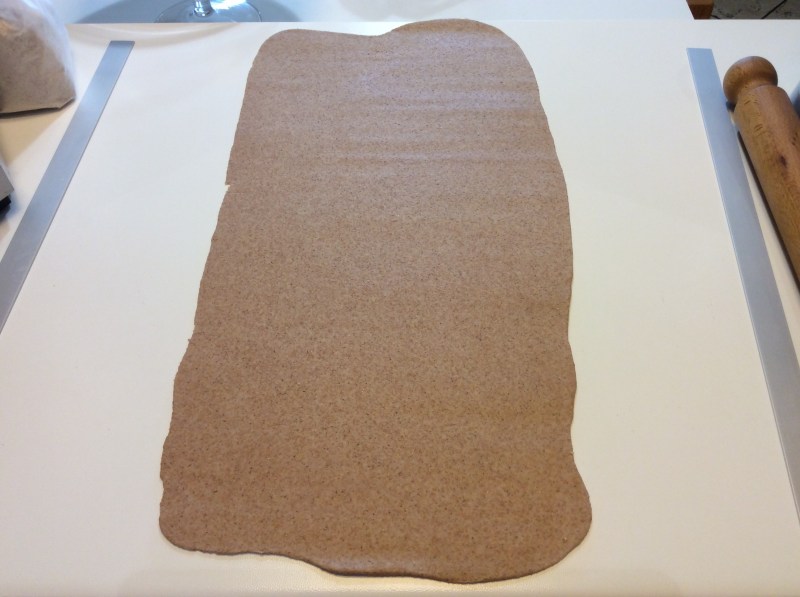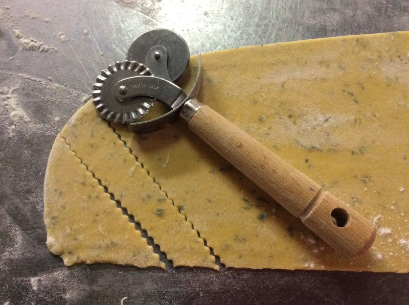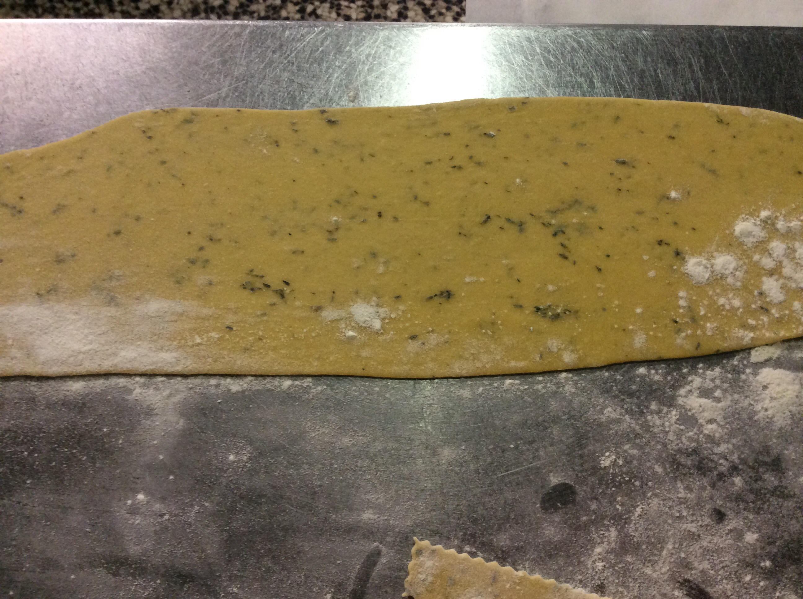 Trascorso il tempo di riposo con un matterello tiro la sfoglia in un lungo rettangolo spessa circa 2 mm
