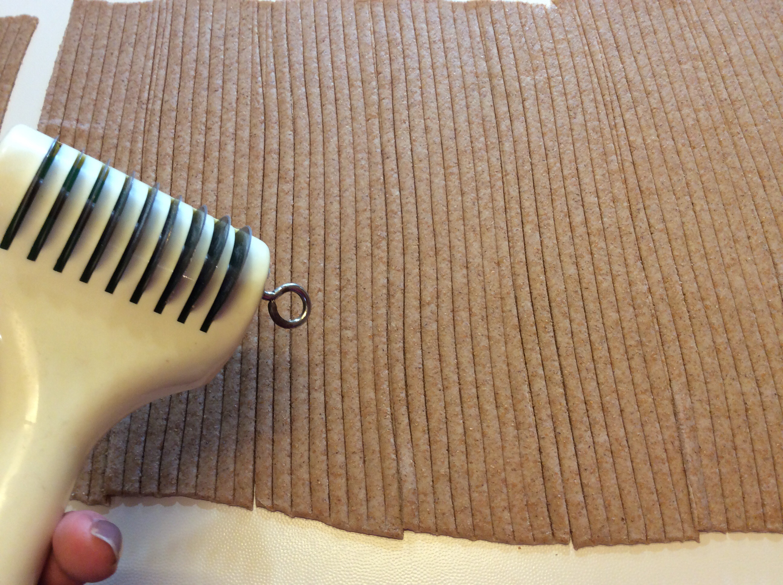Taglio tante striscioline larghe circa 1 cm con un coltello o se avete un attrezzo come il mio sarà più veloce