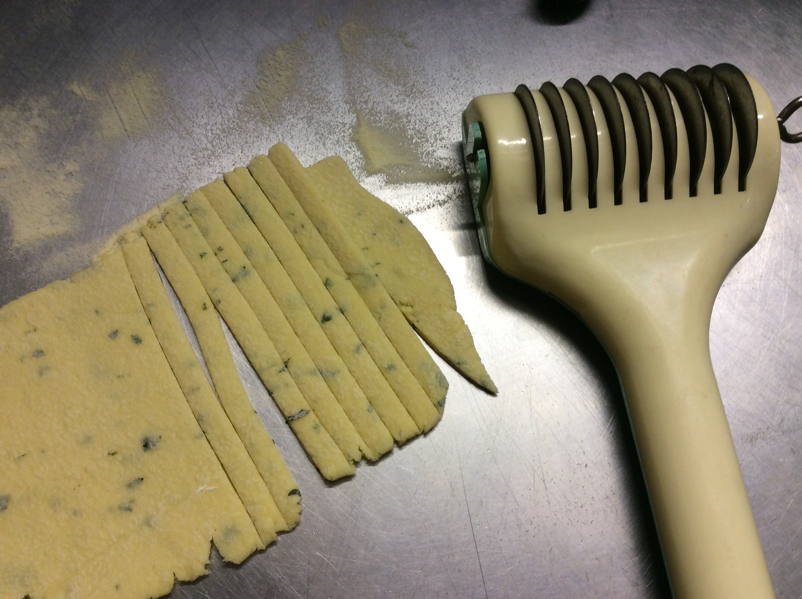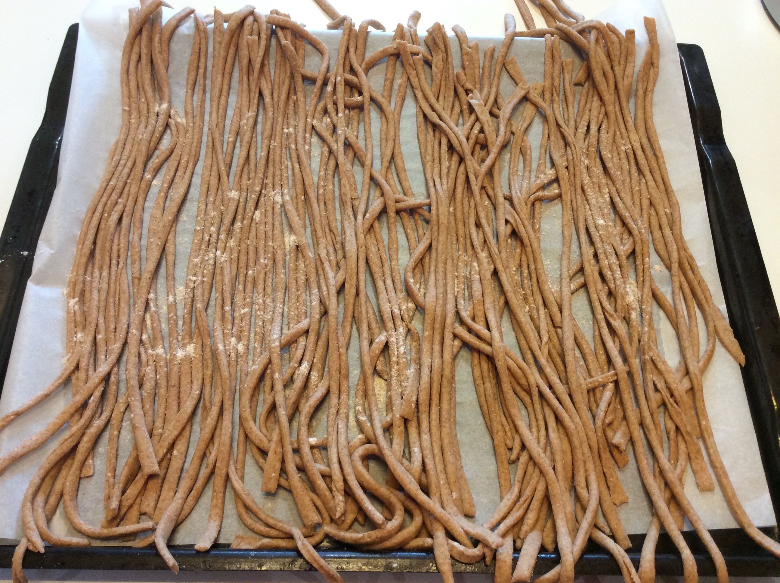 Procedo con tutte le strisce appoggiandoli man mano su una teglia rivestita di carta forno, spolverizzateli leggermente con la farina