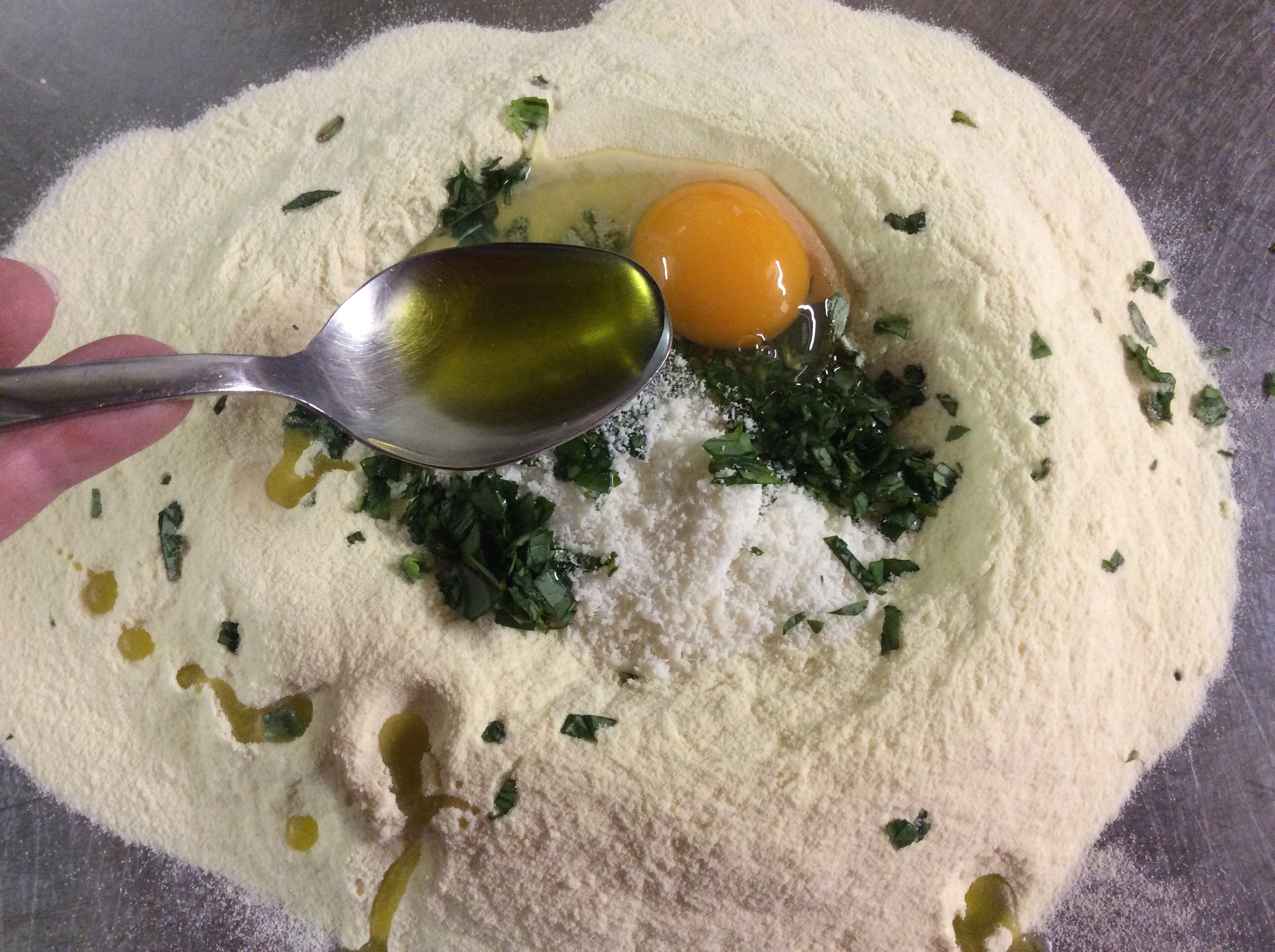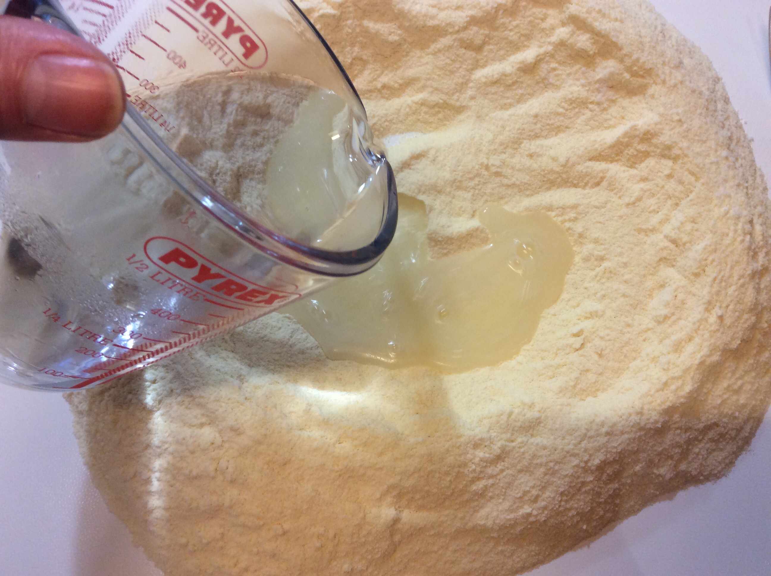 Impasto con le mani aggiungendo poco per volta l’acqua