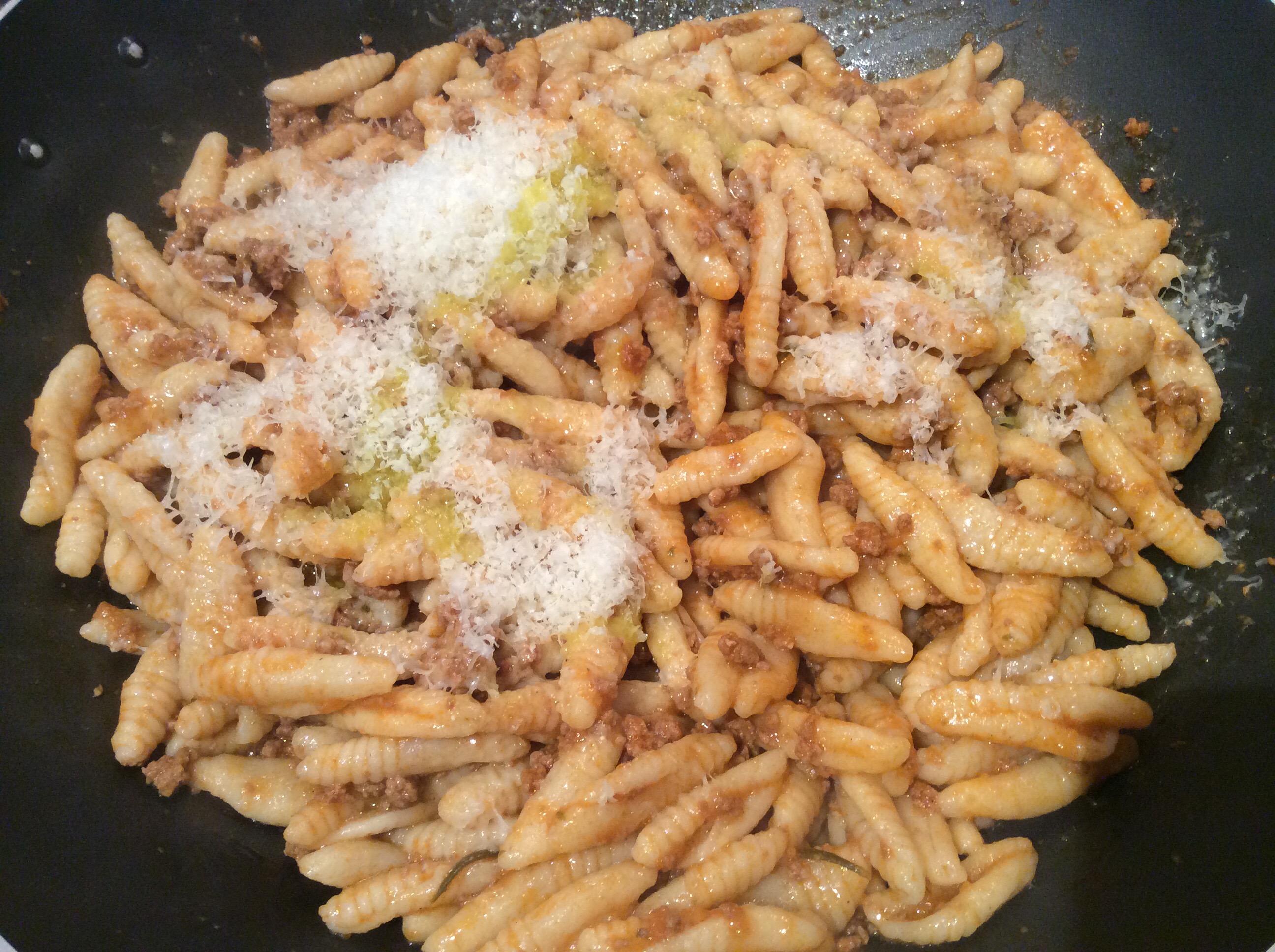Con un mestolo li scolo e li aggiungo al sugo, mescolo delicatamente aggiungendo il formaggio grattugiato