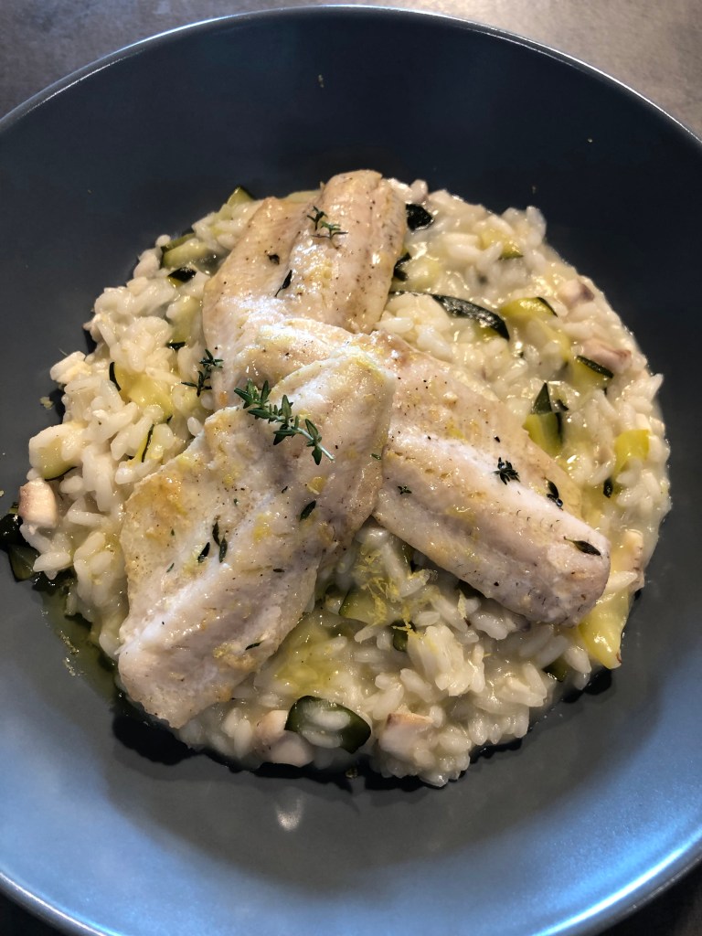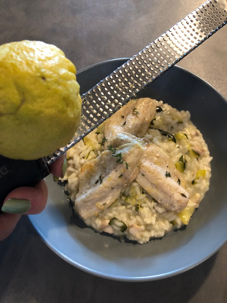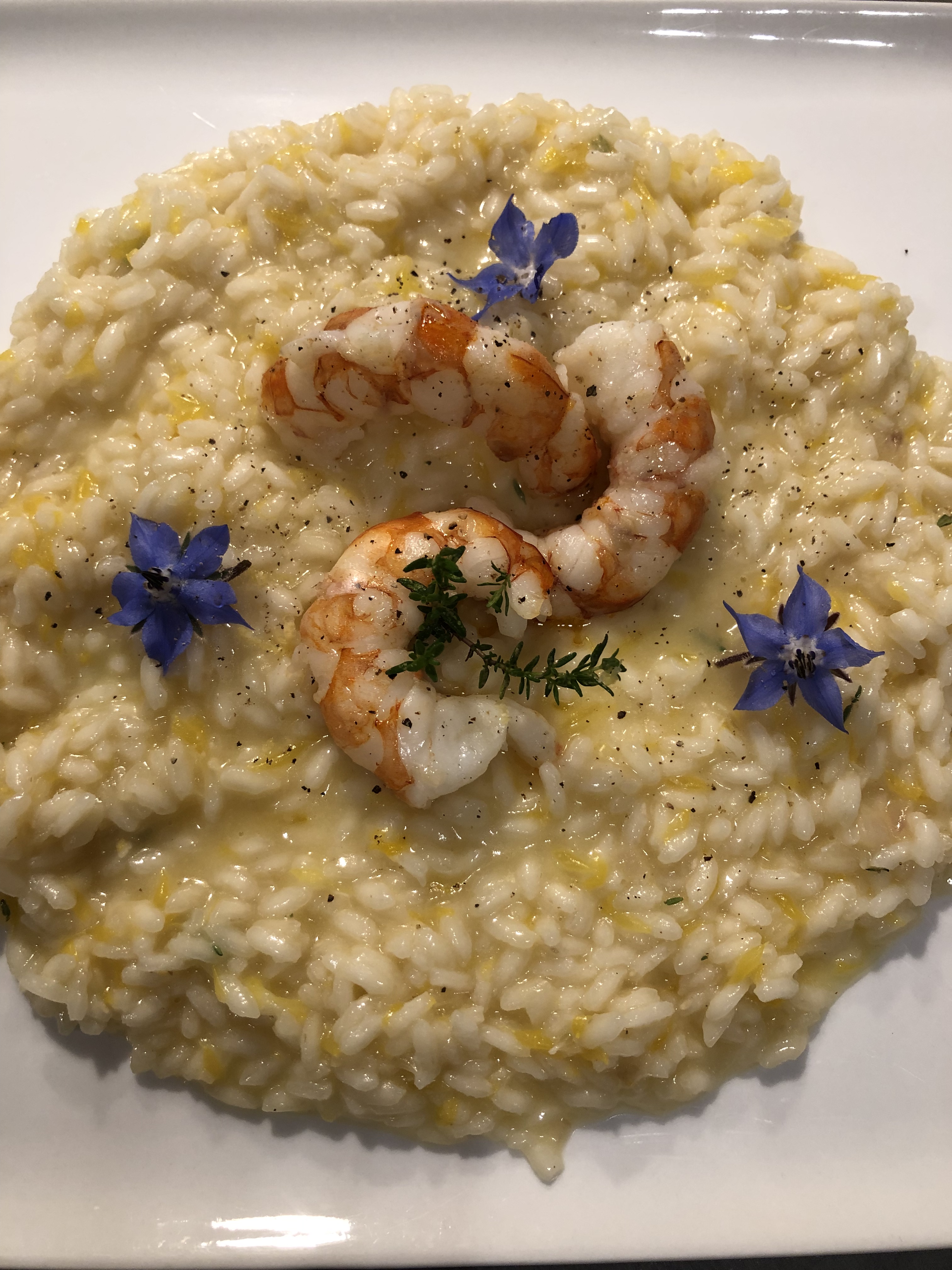 Un fantastico risotto profumato ed elegante, agrumi che danno un tocco di freschezza, io l’ho impreziosito con le code di gamberi, ma é buono anche senza, ho decorato il piatto con i fiori di borragine