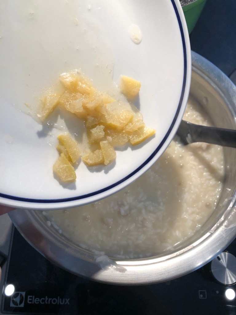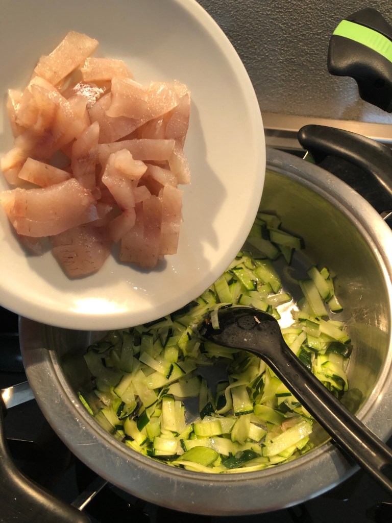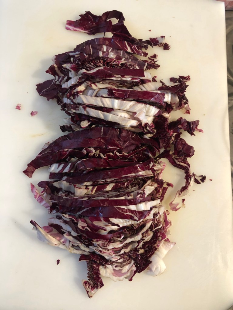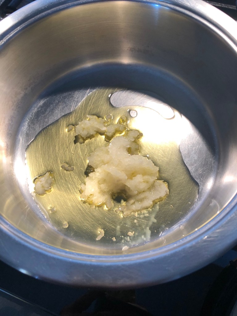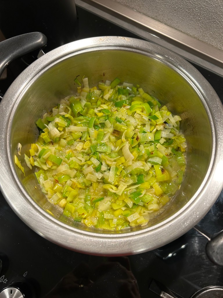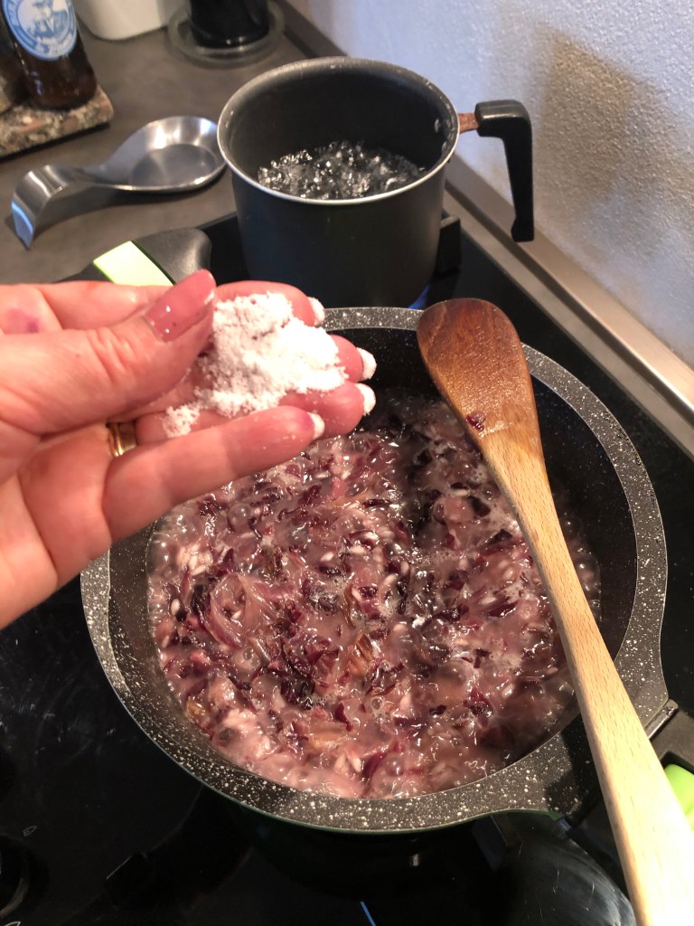 Lo metto in una padella con abbondante olio e lascio cuocere dolcemente aggiungendo se serve un po’ di brodo vegetale, deve risultare morbido, aggiungo poco sale