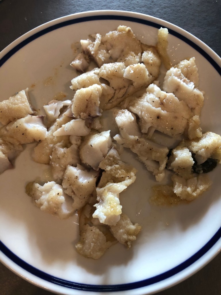 Quando la trota é cotta, attenzione a non seccarla, la suddivido in piccoli tranci, si staccherà facilmente dalla pelle che elimino