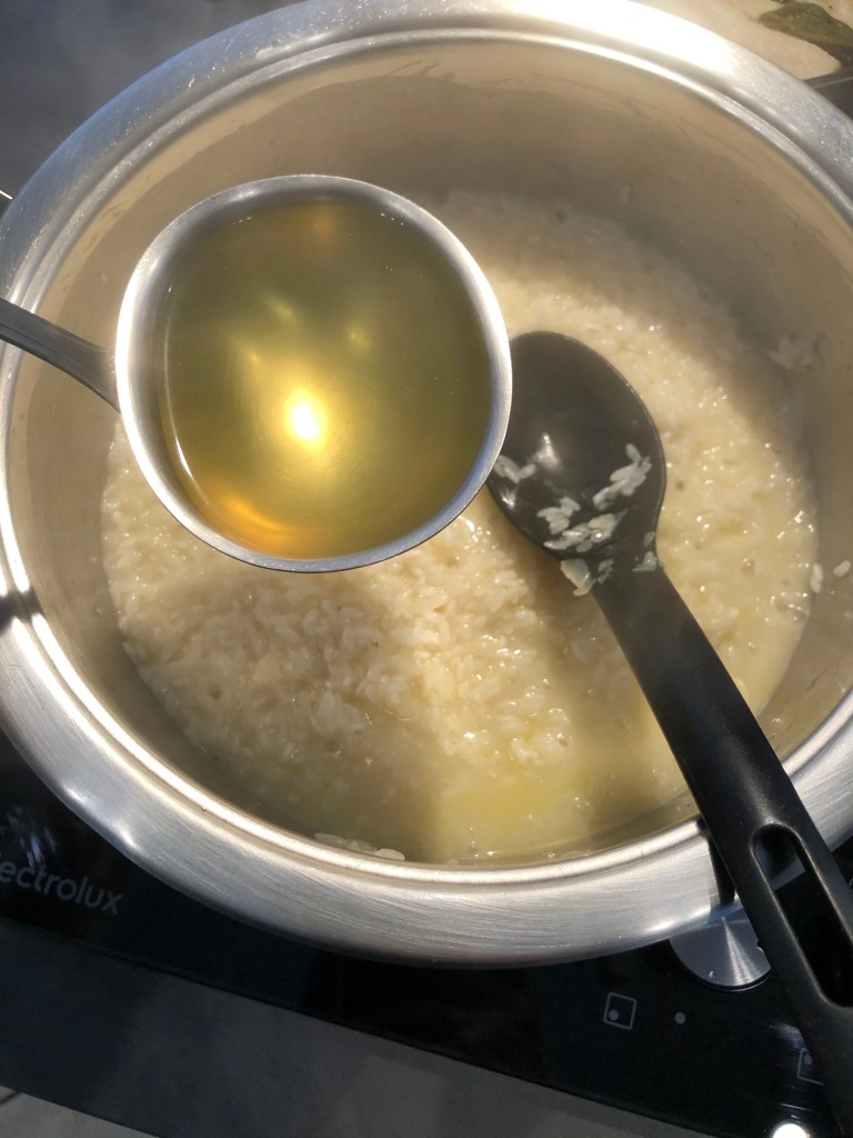 Quando il vino é evaporato inizio ad aggiungere poco per volta il brodo