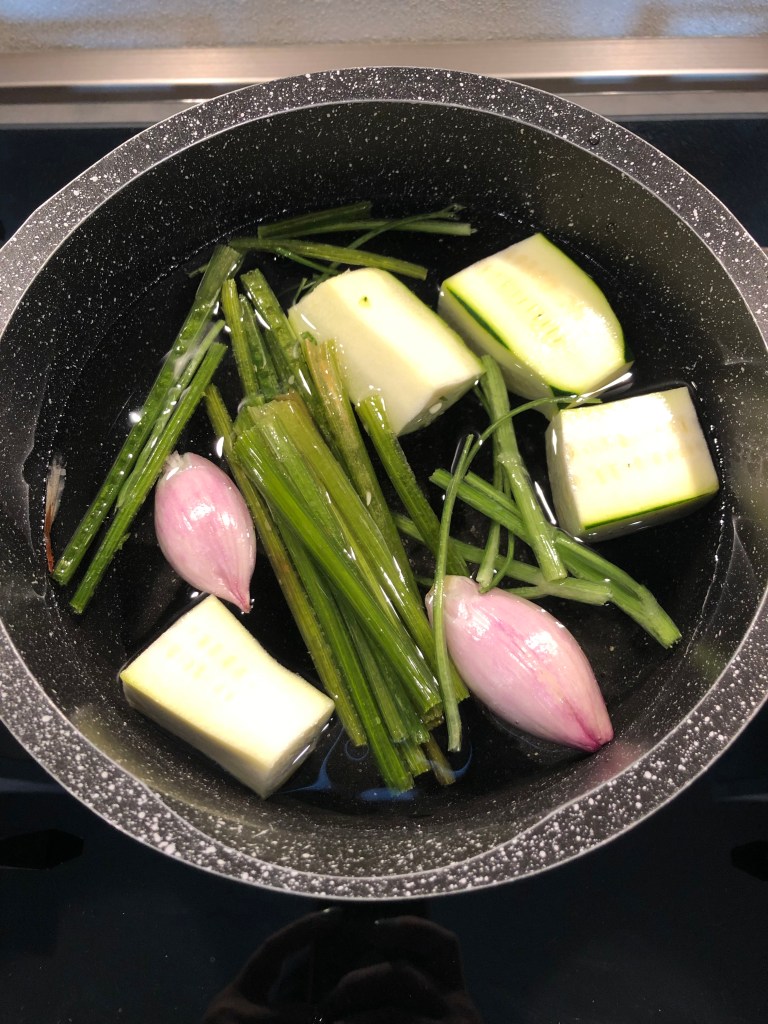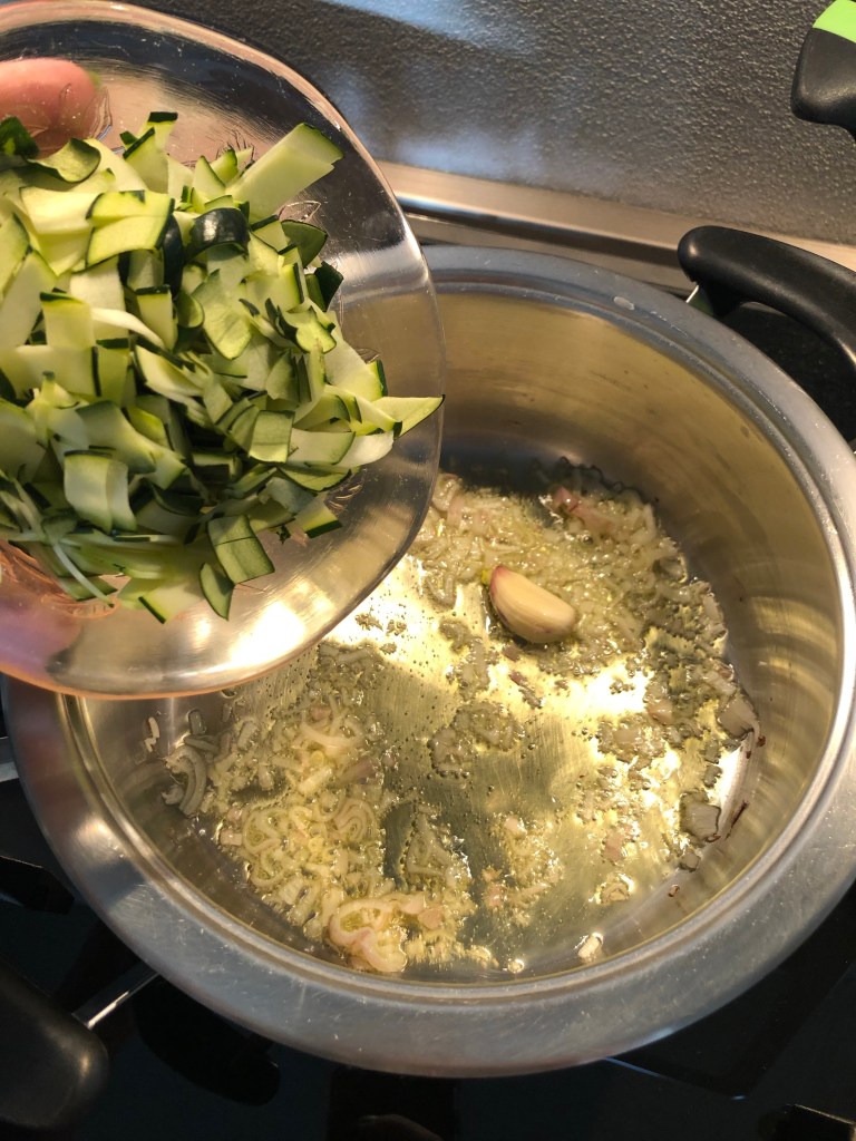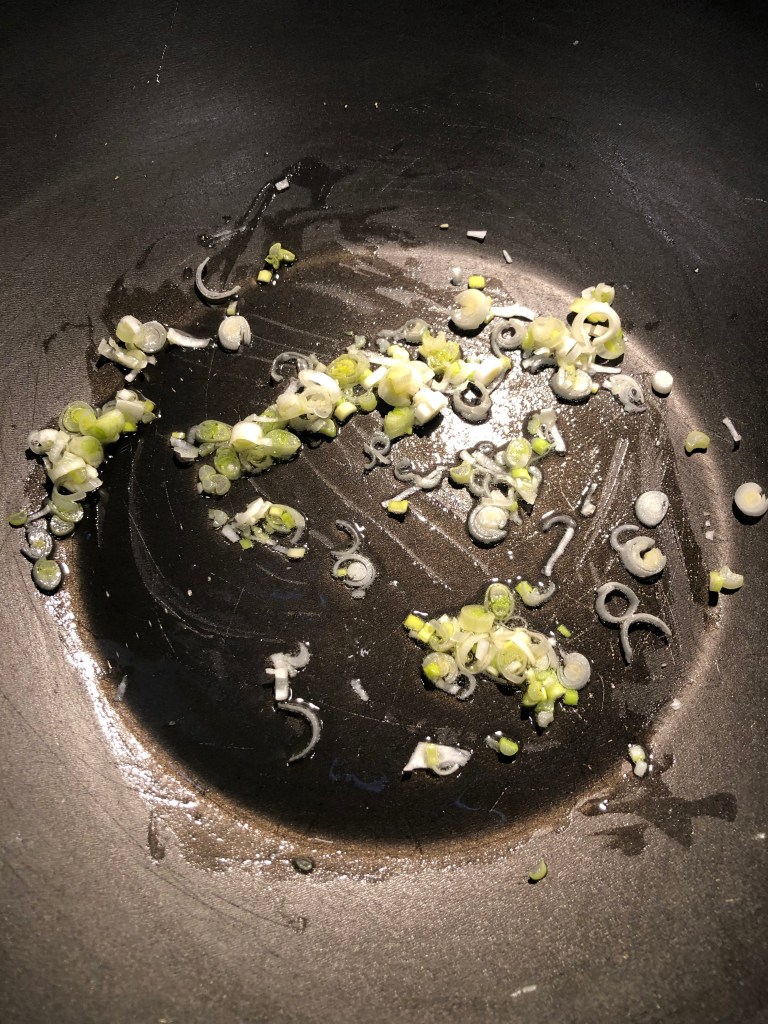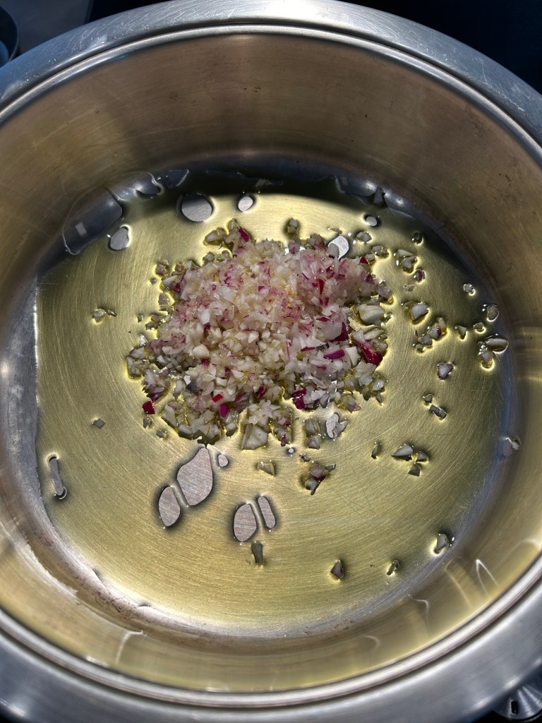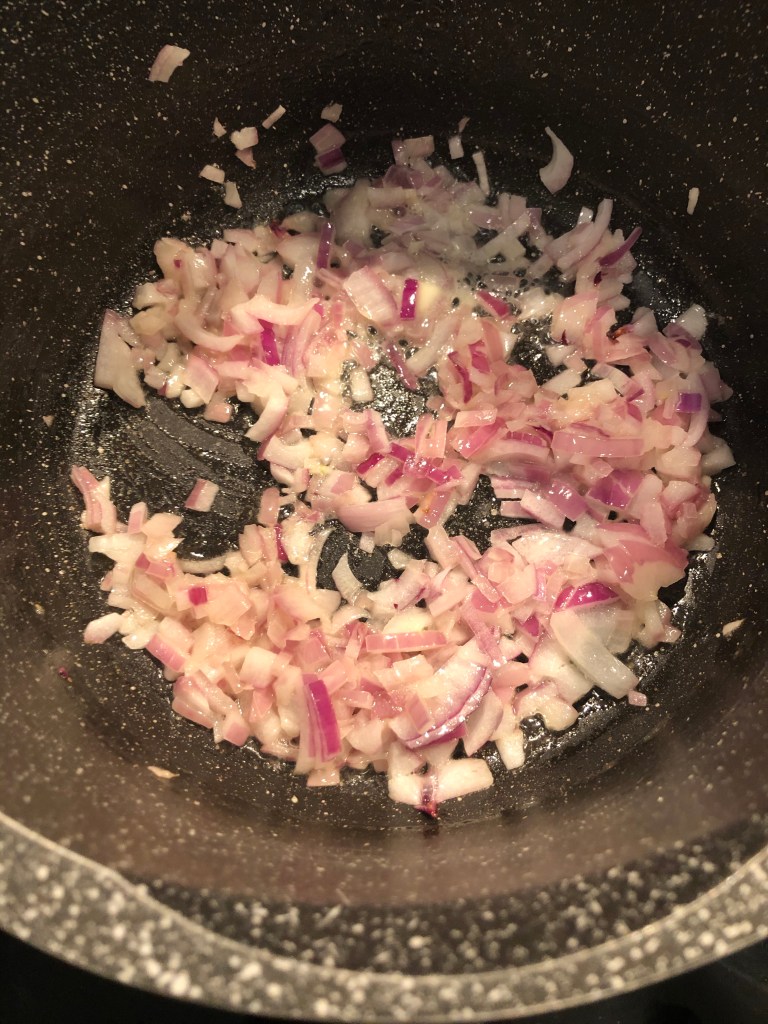 In una padella metto dell”olio e lo scalogno tritato e lascio soffriggere